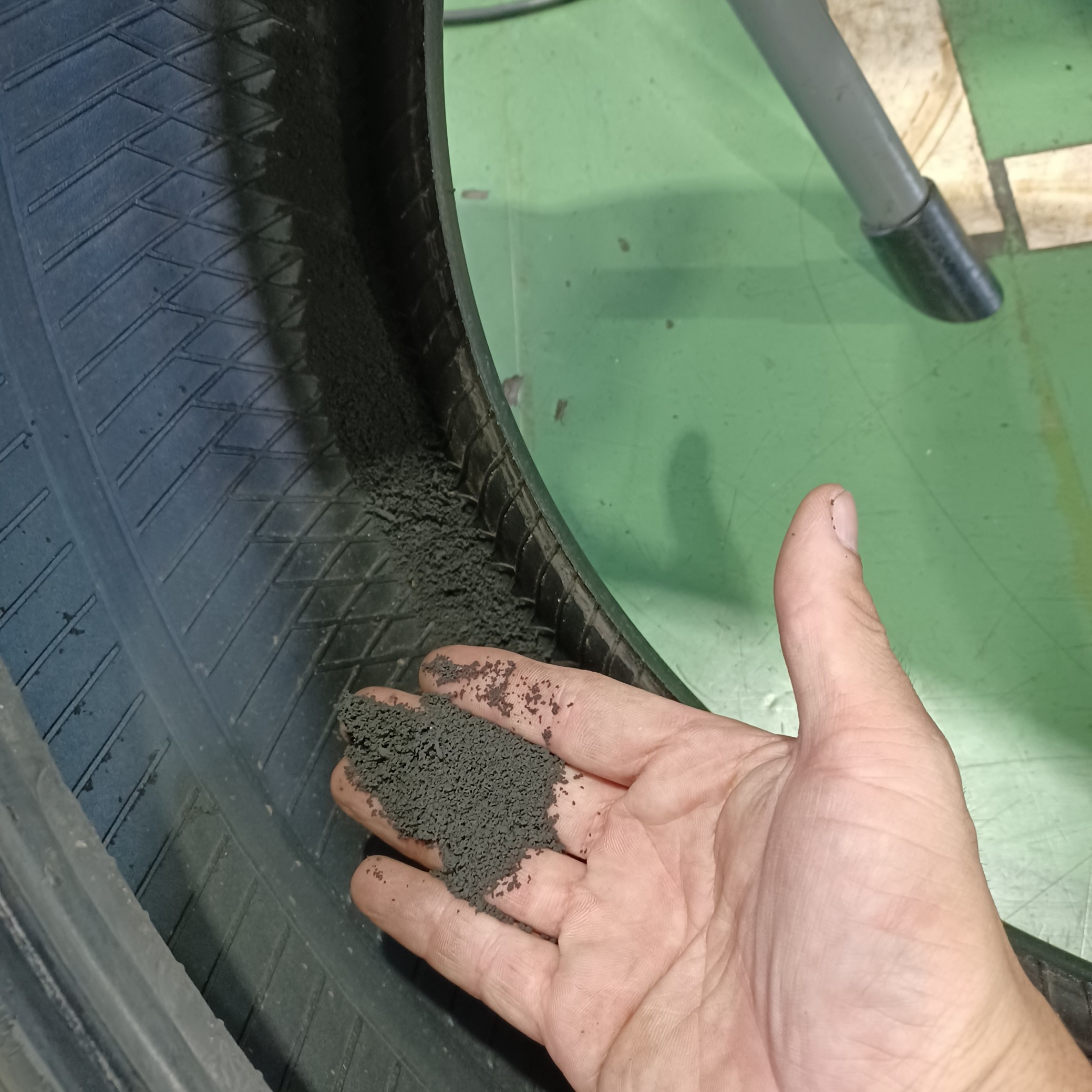 タイヤの内部のゴムが、粉砕してゴムカスが