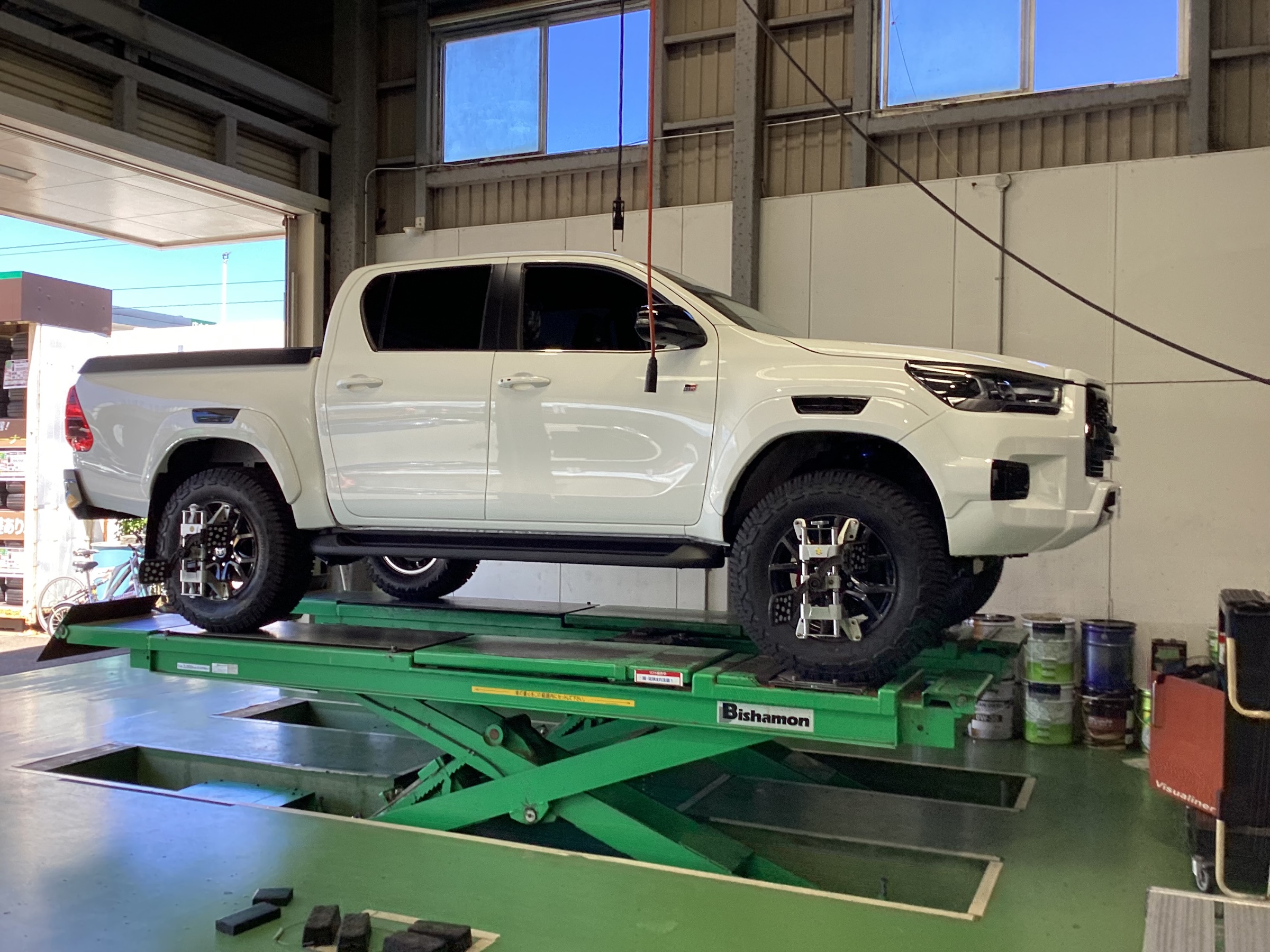 TOYOTA HILUX GUN125 ポスト 2024年1月16日 福岡市早良区のタイヤ館次郎丸です。 今回は、トヨタ ハイラックスです。 4×4系では見落とされがちですが、 リフトアップでもアライメント調整は重要です。 ありがとうございました。 担当:工場長