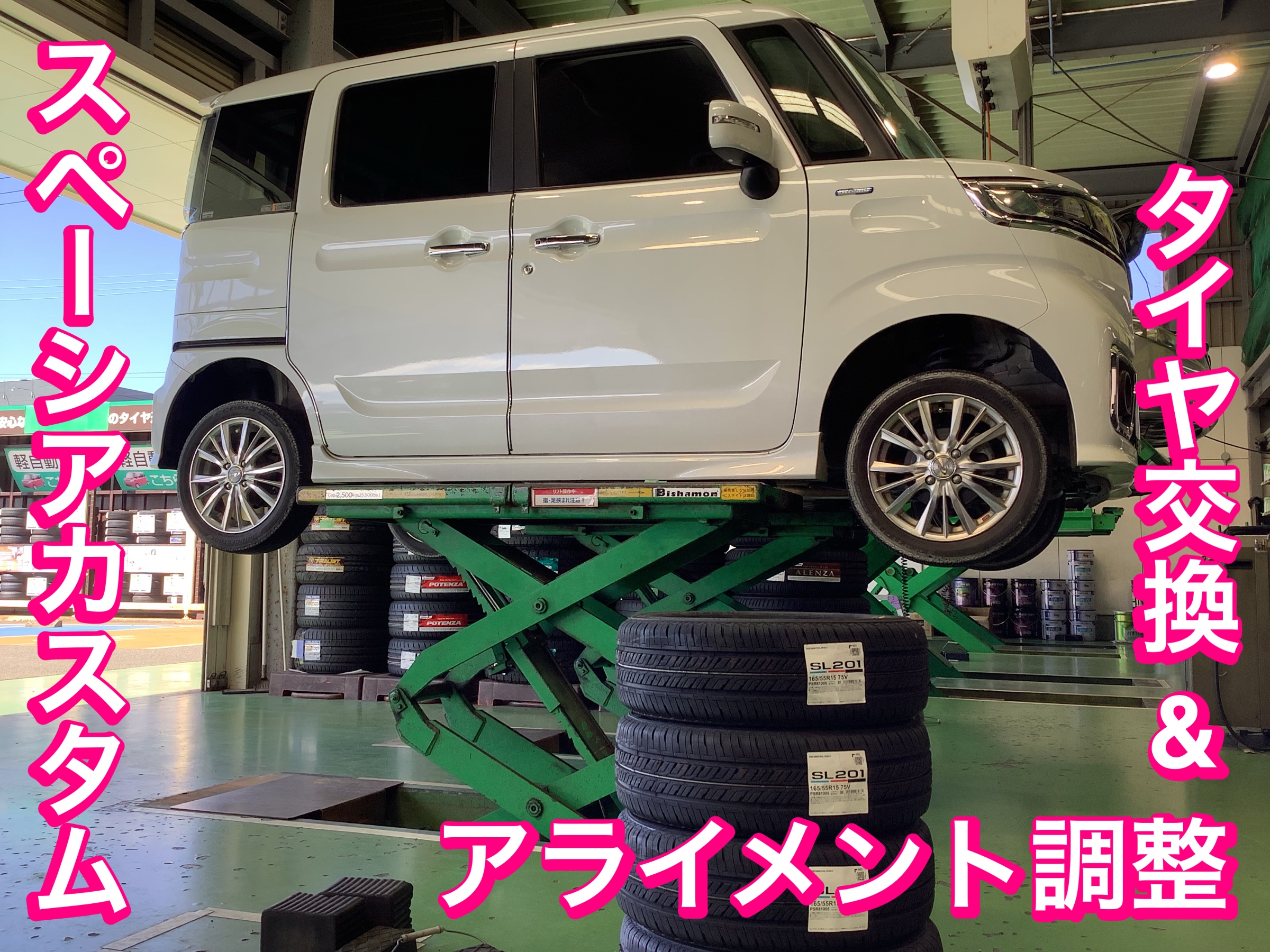 タイヤ交換 アライメント調整 スペーシアカスタム DAA-MK53S