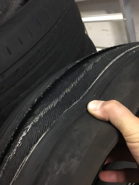 しかもタイヤの表面は既に剥離しかけており、非常に危険!!