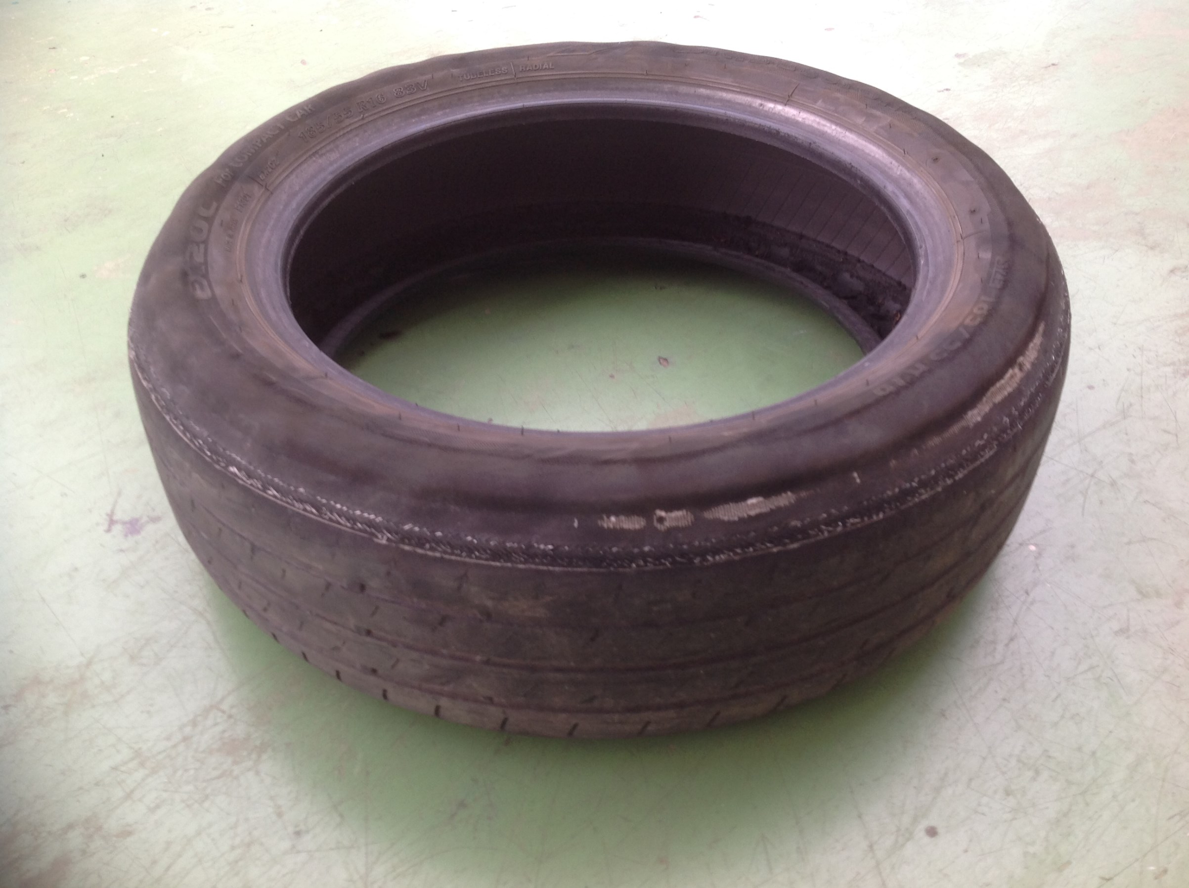 タイヤを点検させて頂くと、減りすぎてワイヤーが出てきて破れてエアーが抜けた状態でした。