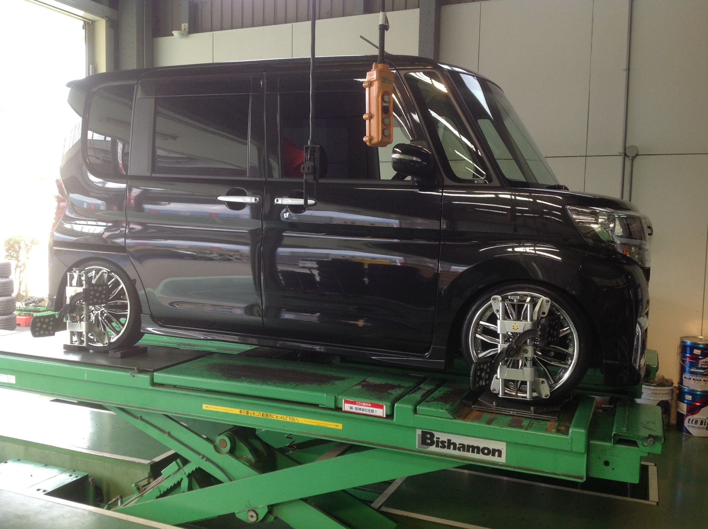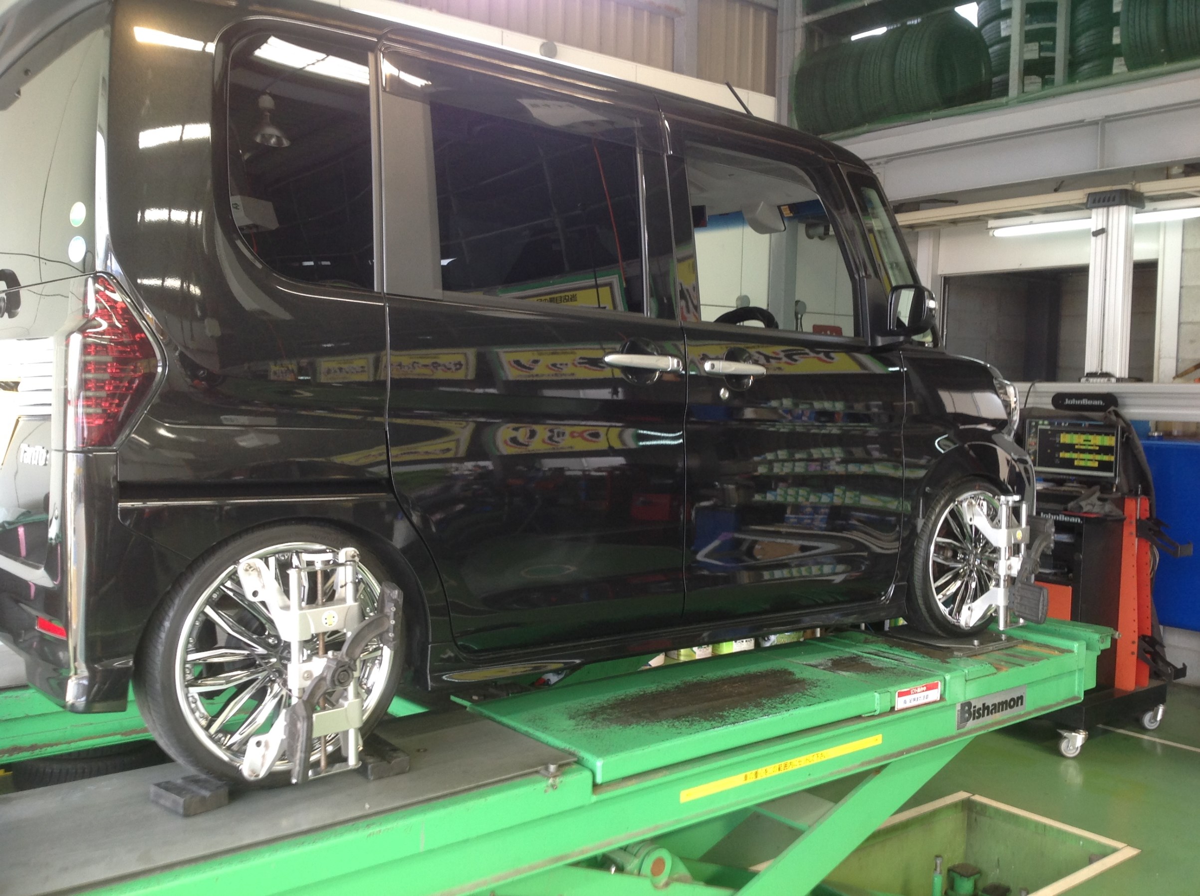タントカスタム タイヤ2本+ホイール1枚交換+アライメント調整