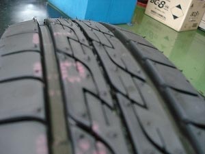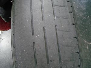 交換前のタイヤはスリップサインが出て、偏摩耗していたので