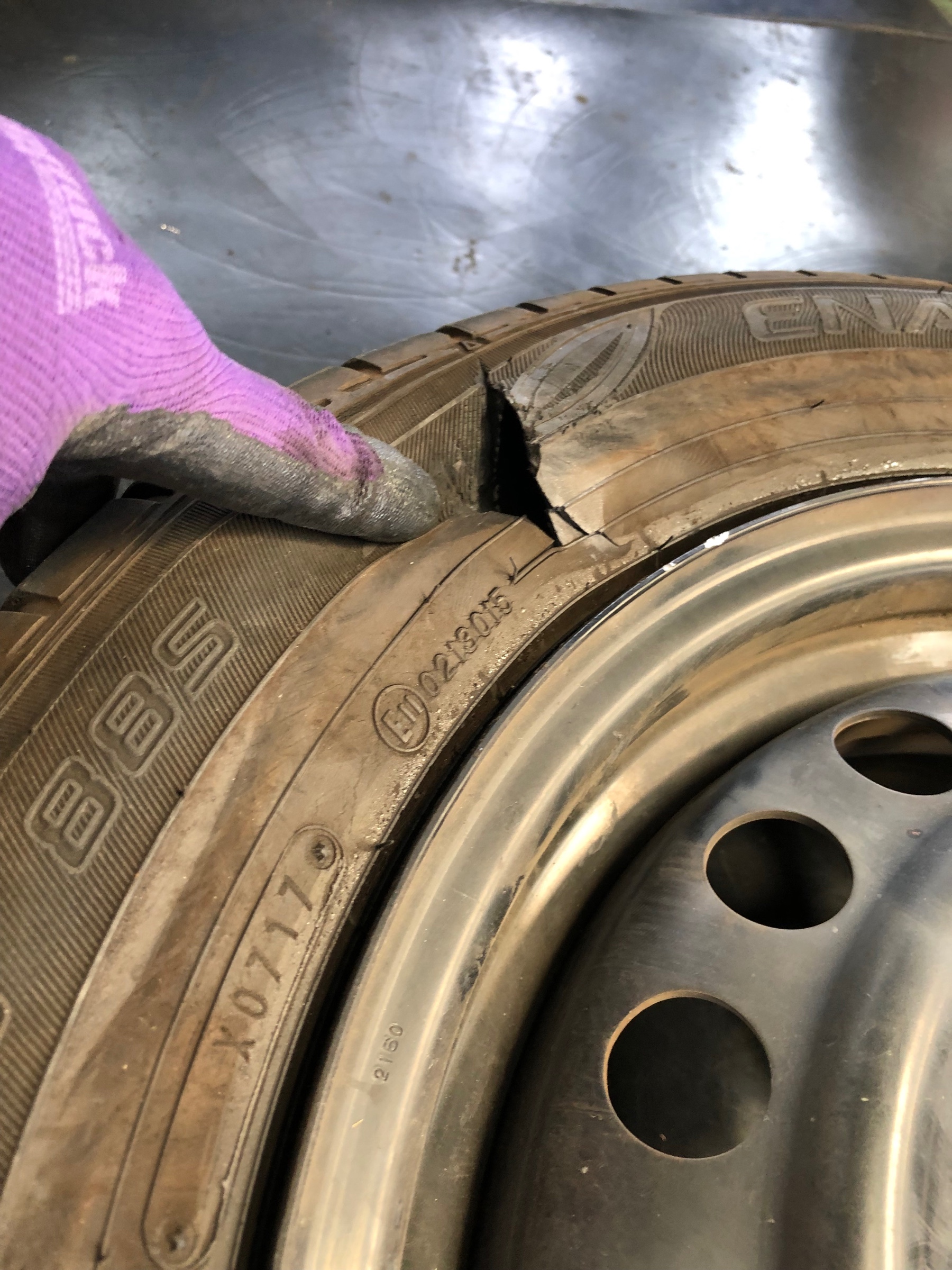 タイヤの側面はとても薄いので皆さんも縁石などには十分気をつけ運転したください!