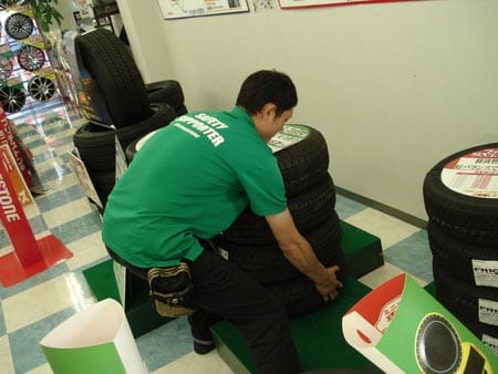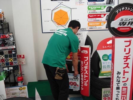 “当店ではひとめで見て解りやすいタイヤ展示をしています!”