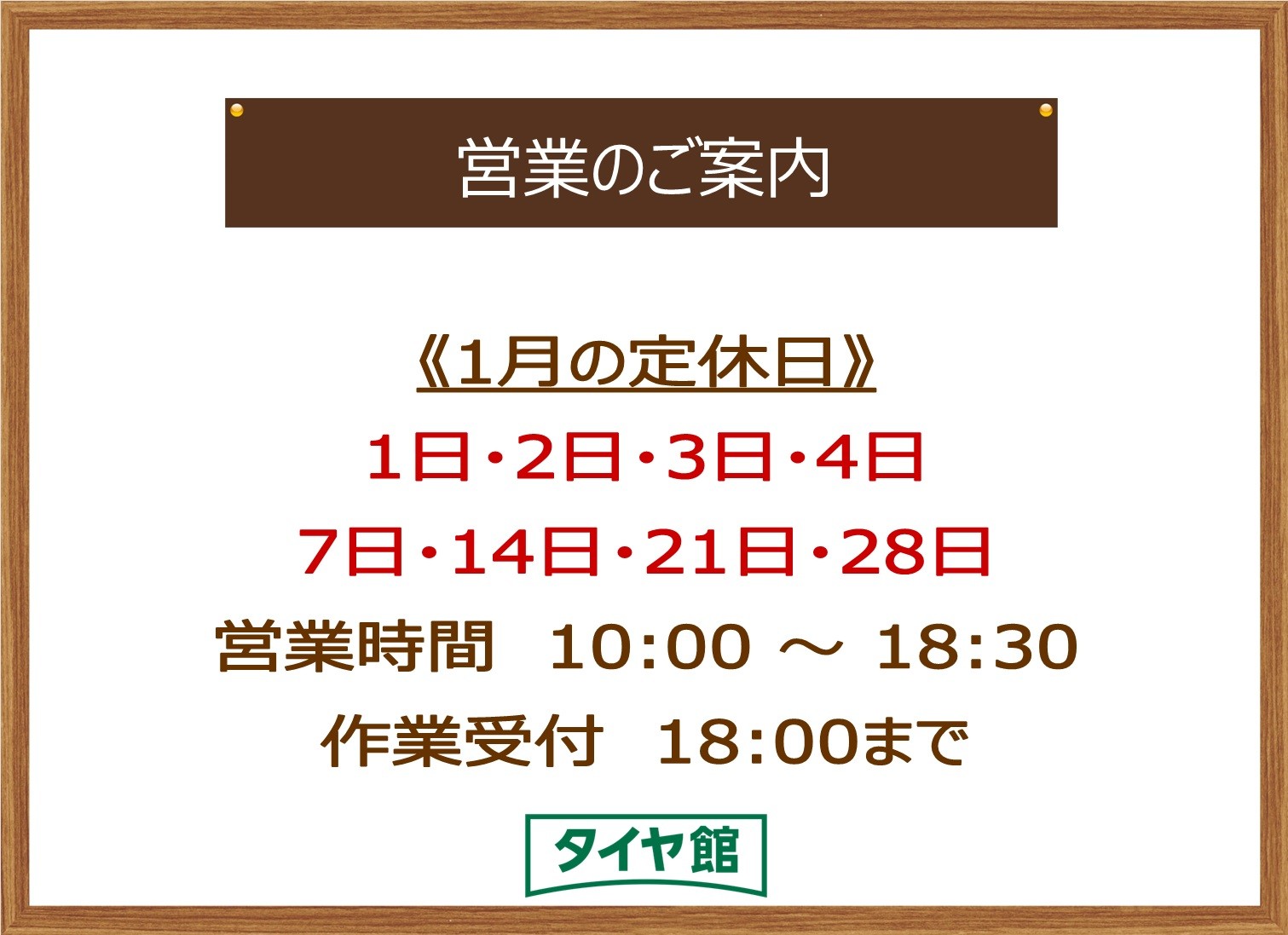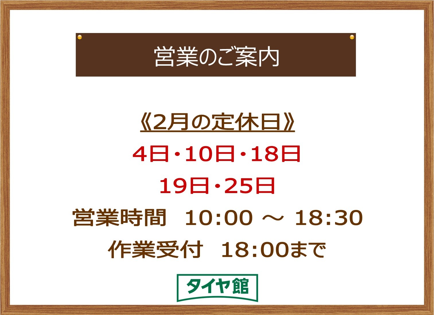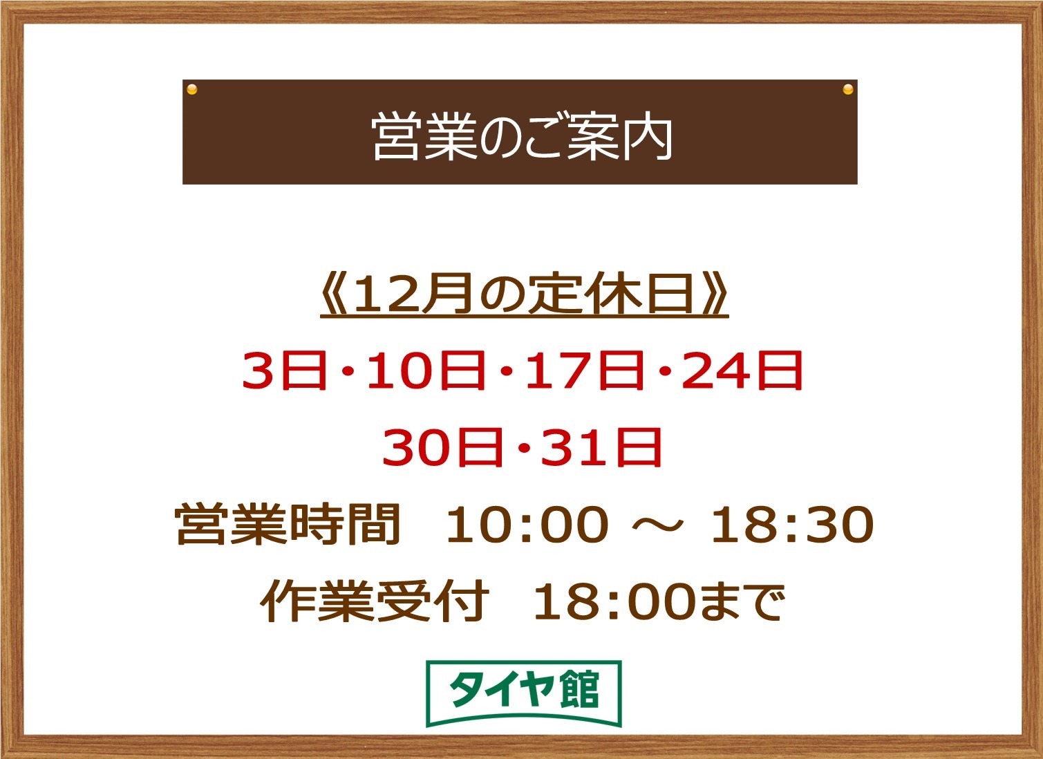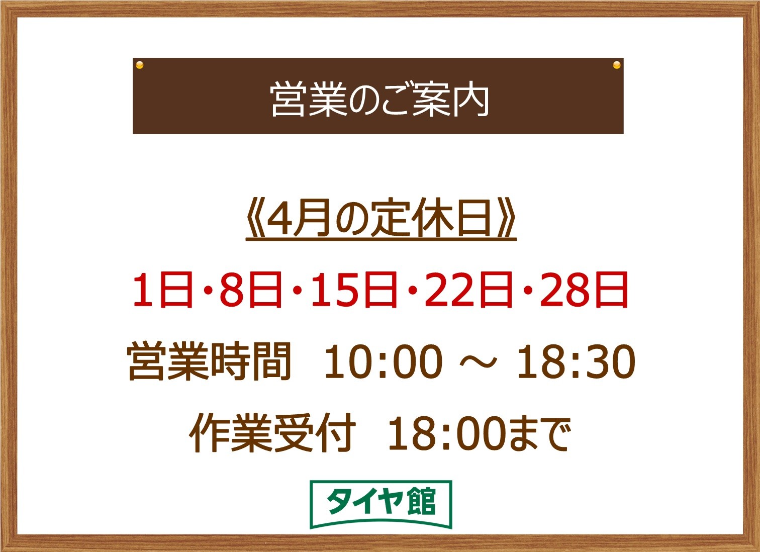 10:00 ~ 18:30 (作業受付 18:00迄)※季節等により変動がある場合がございます。詳しくは『お知らせ』をご確認ください。