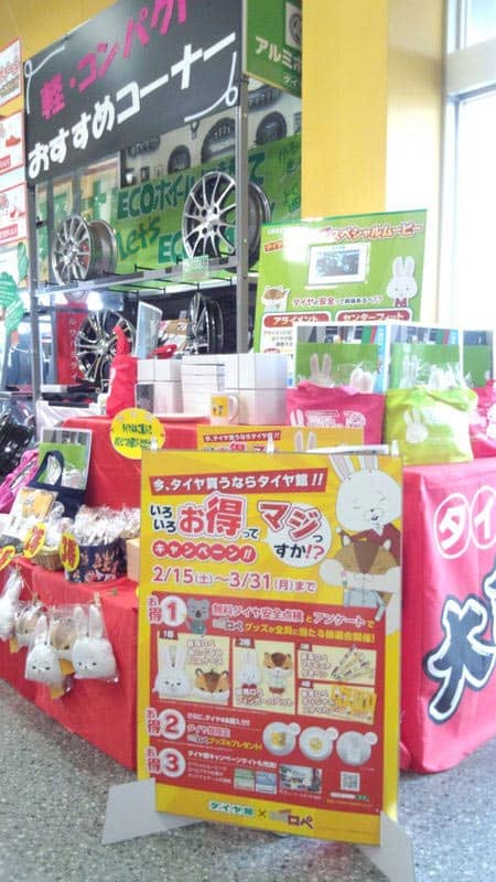 無料タイヤ安全点検とアンケートで、紙兎ロペグッズが全員に当たる