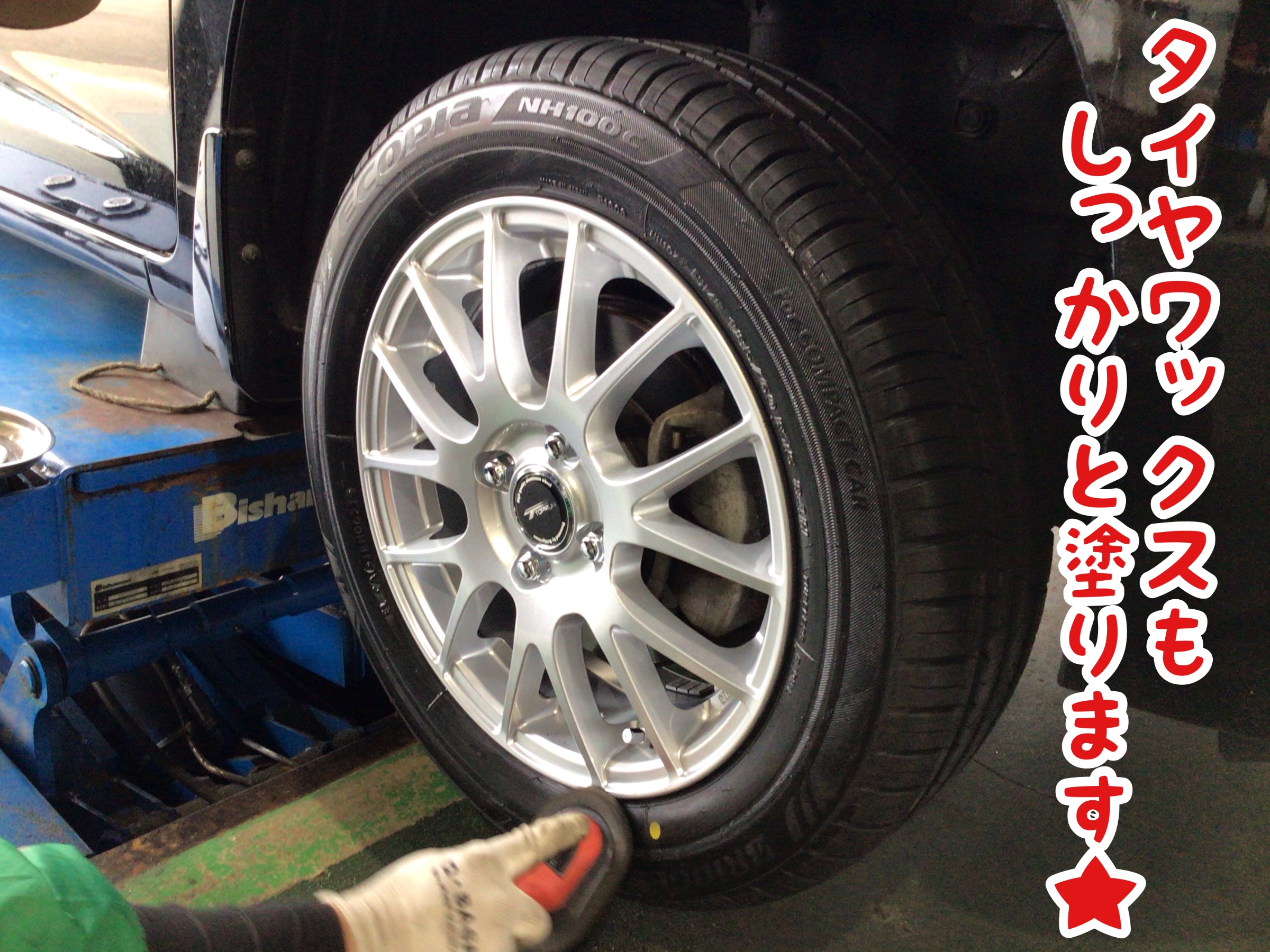 タイヤにワックスを塗ります☆