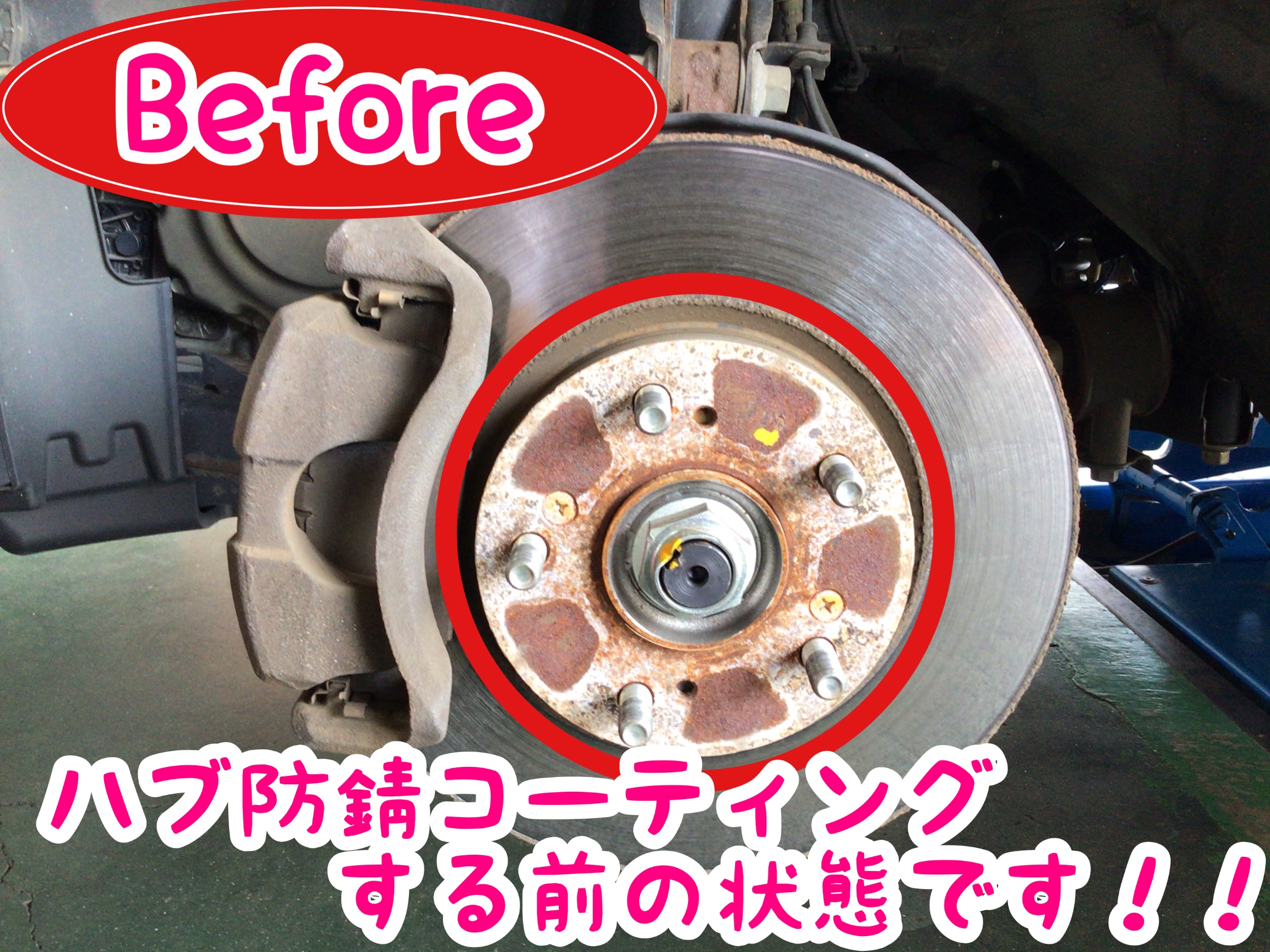 ハブ防錆コーティングする前と