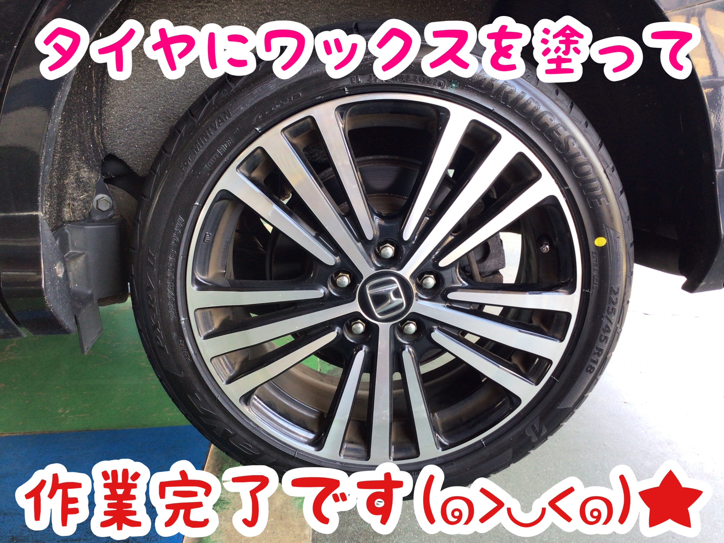 タイヤにワックスを塗ってタイヤ交換の