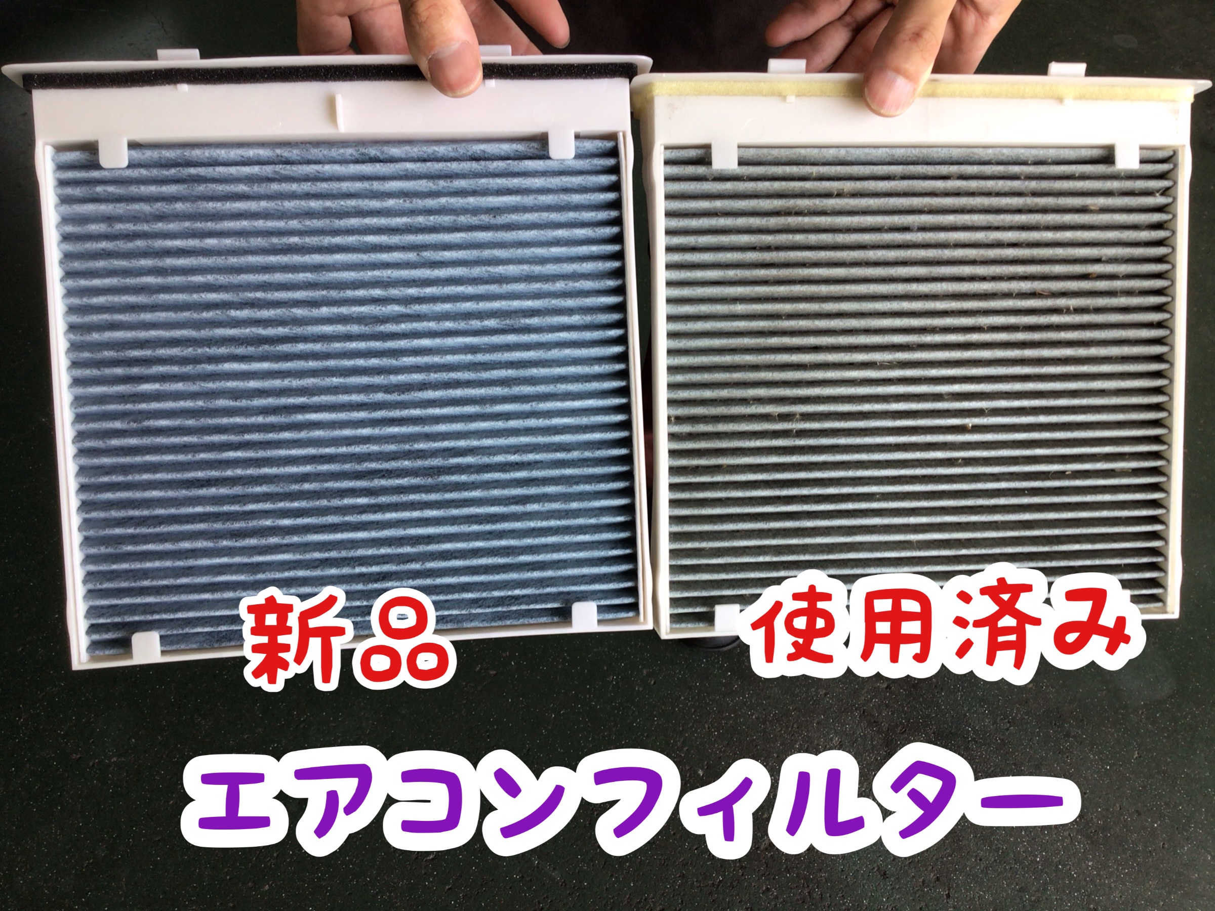 新品と、使用済みのエアコンフィルターを