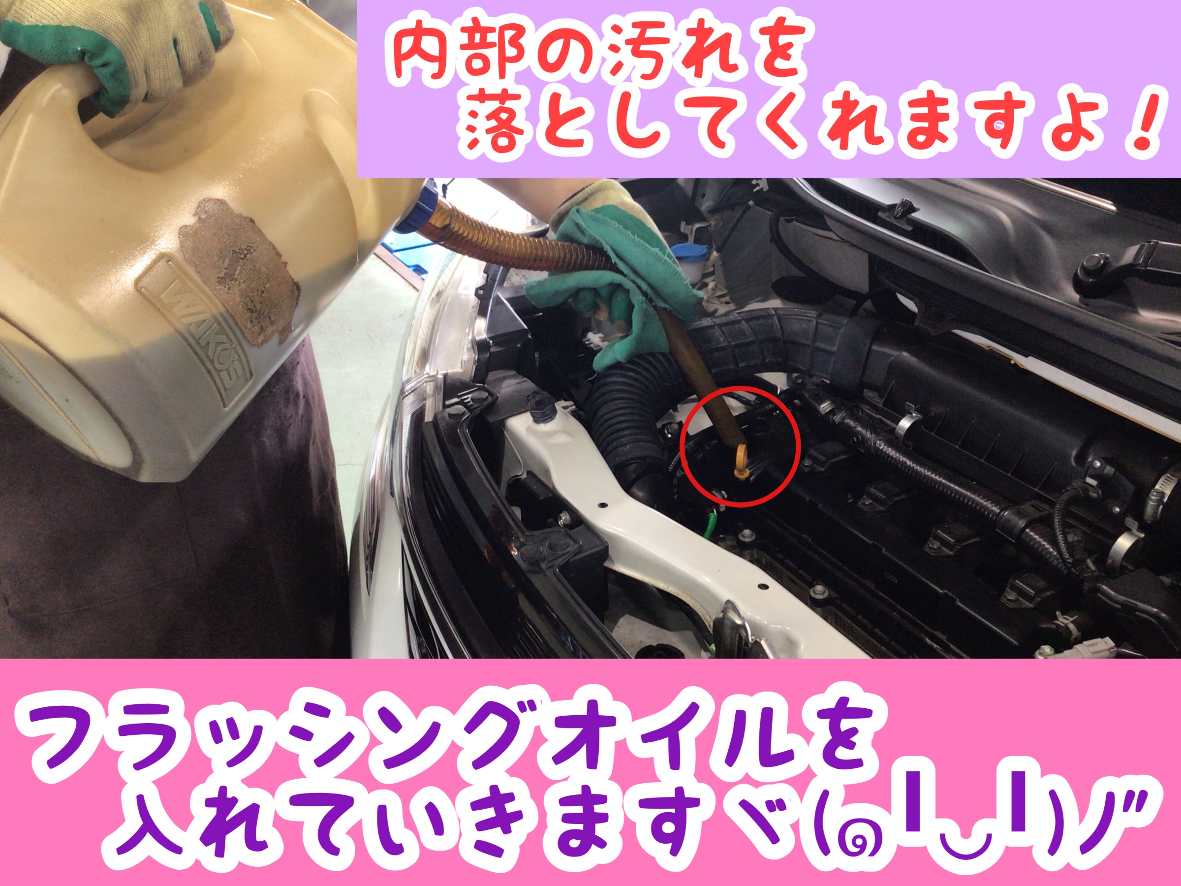 フラッシング剤を入れて、お車のエンジンを