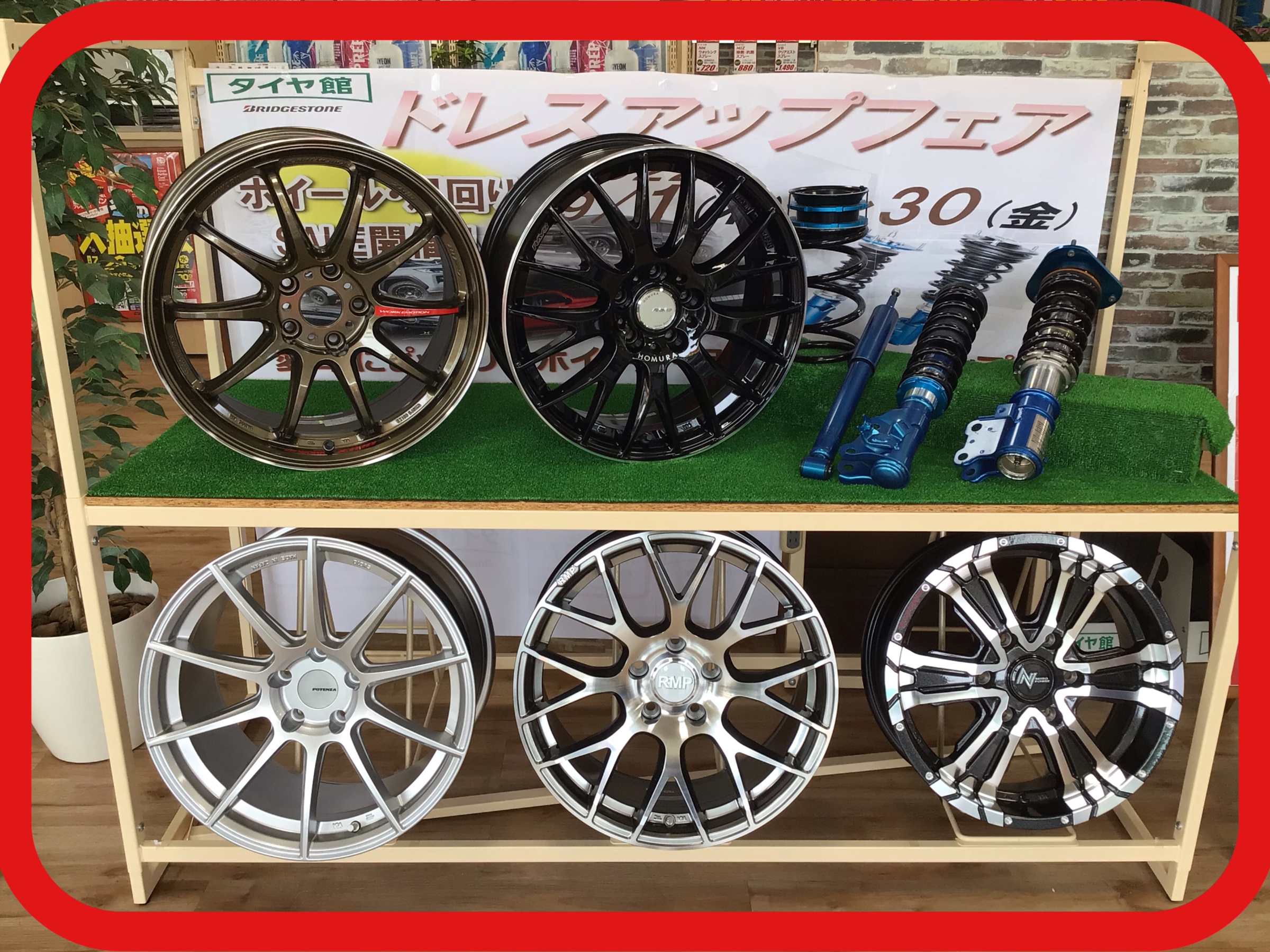 珍しいホイールも展示してありますよ(๑˃̵ᴗ˂̵)★ご覧ください♬♬♬ ポスト 2022年9月3日 みなさんこんにちは〜(о´∀`о)★ ただいまタイヤ館上越では、 ドレスアップフェアを開催しています!!! それに伴い、当店に普段なかったような ホイールが展示されていますよ\(^ω^)/ みなさんの気になっていたホイールが展示で 見ることができるチャンスかもしれないです(๑˃̵ᴗ˂̵)☆ ぜひお出かけの際には、当店にお寄りください♬♬ スタッフ一同みなさんのご来店をお待ちしてます★★ ここ最近ホイール関連のご相談も増えていますよ!! 気になる方はぜひご来店して お目当ての物を見つけてくださいね★ タイヤ館 上越 住所:942-0063新潟県上越市下門前883-1 電話番号: 025-545-3230 相談予約 タイヤ点検・安全点検/タイヤ履き替え/オイル交換/その他ピット作業の予約