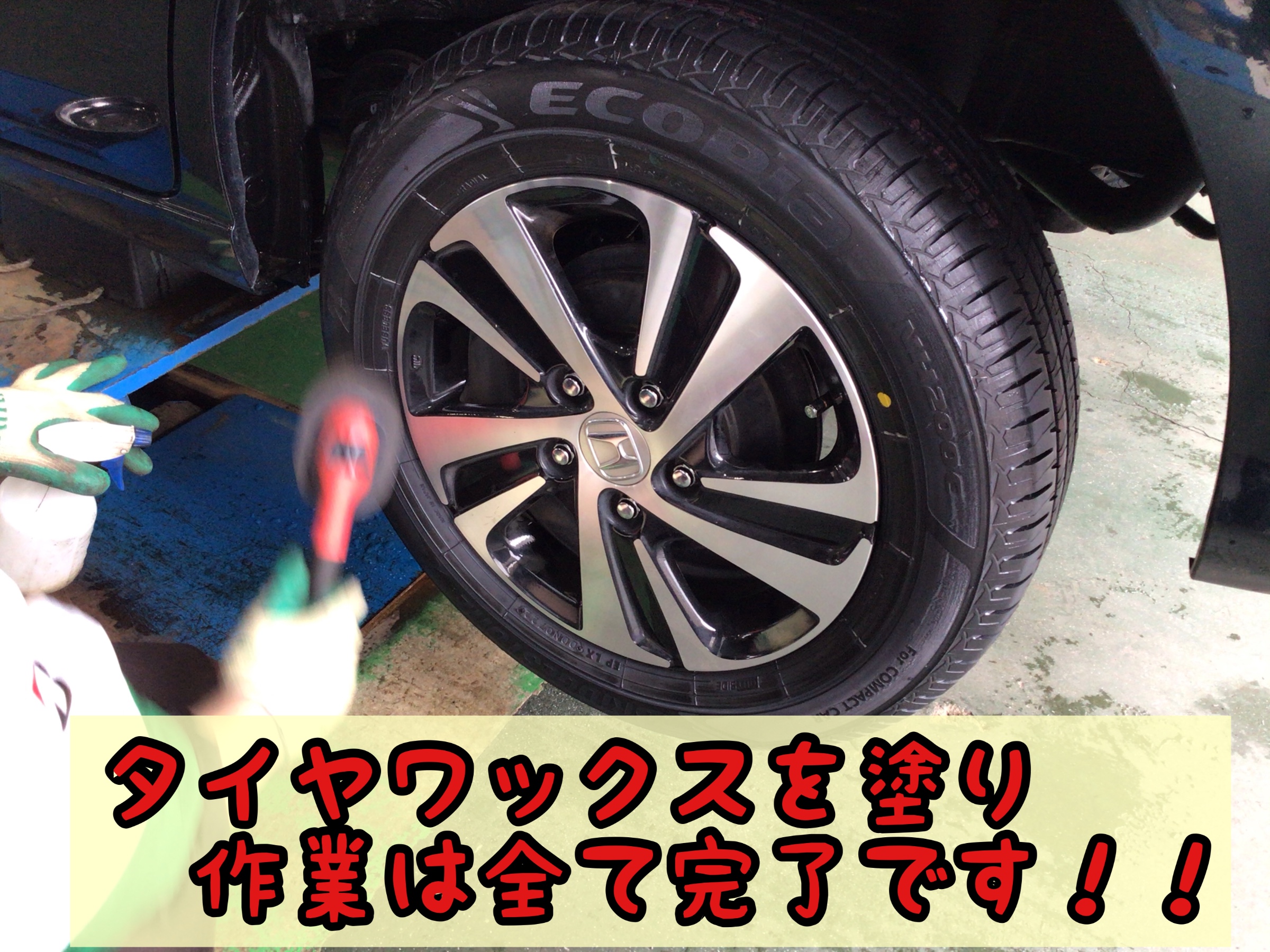 最後にタイヤワックスを塗り作業完了です★★