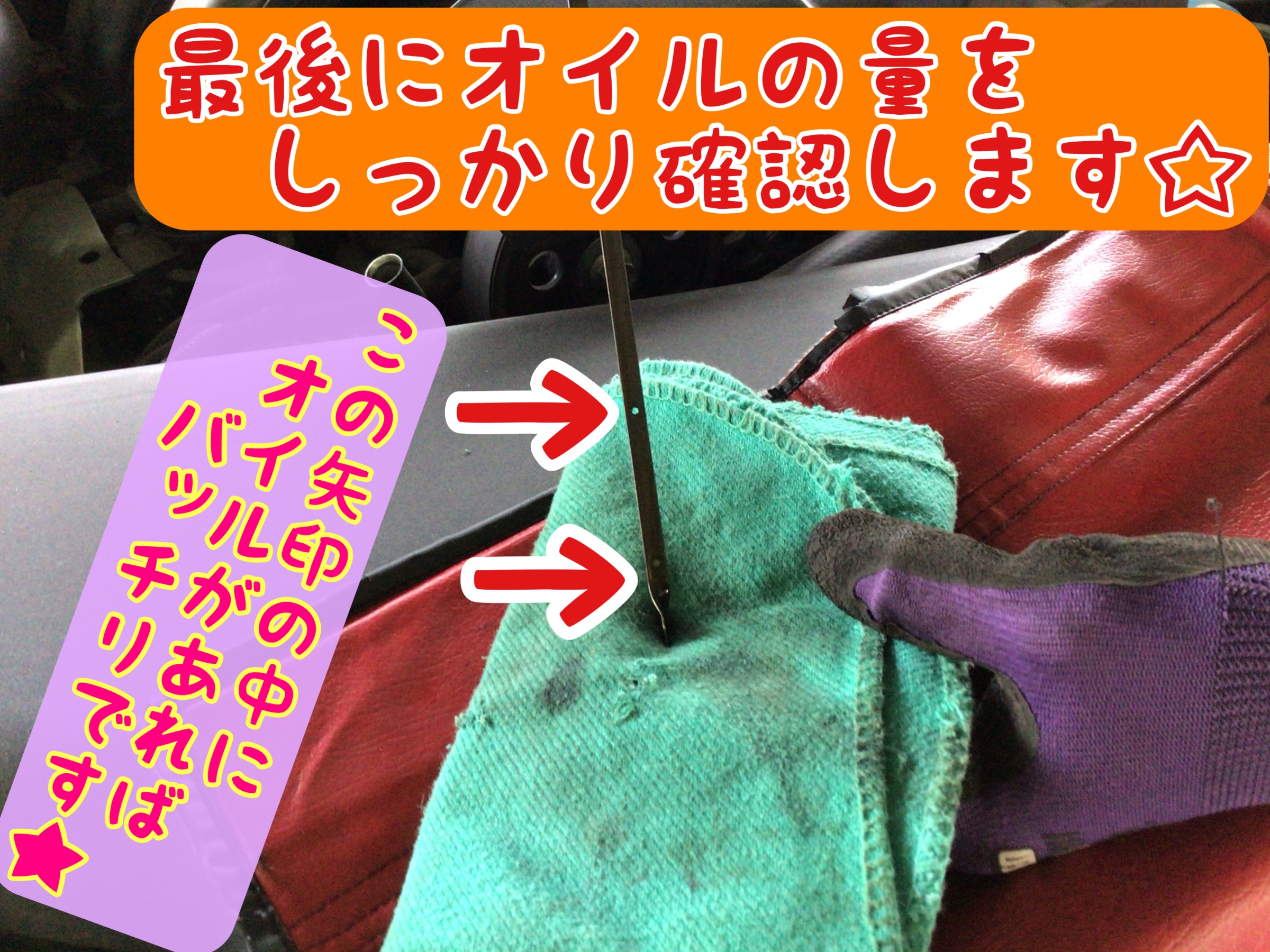 最後にオイルの量を確認します!!!