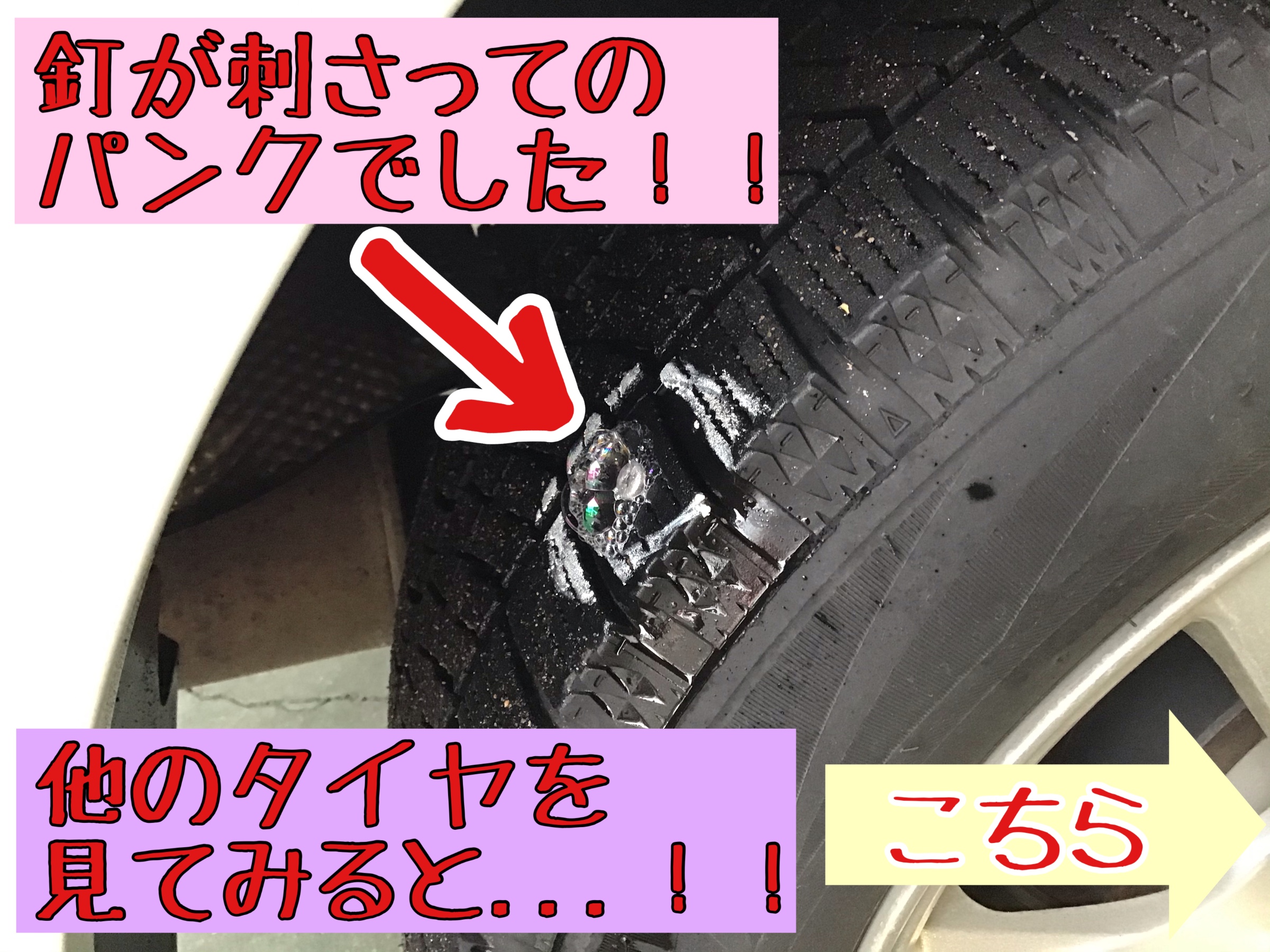 釘が刺さってパンクで