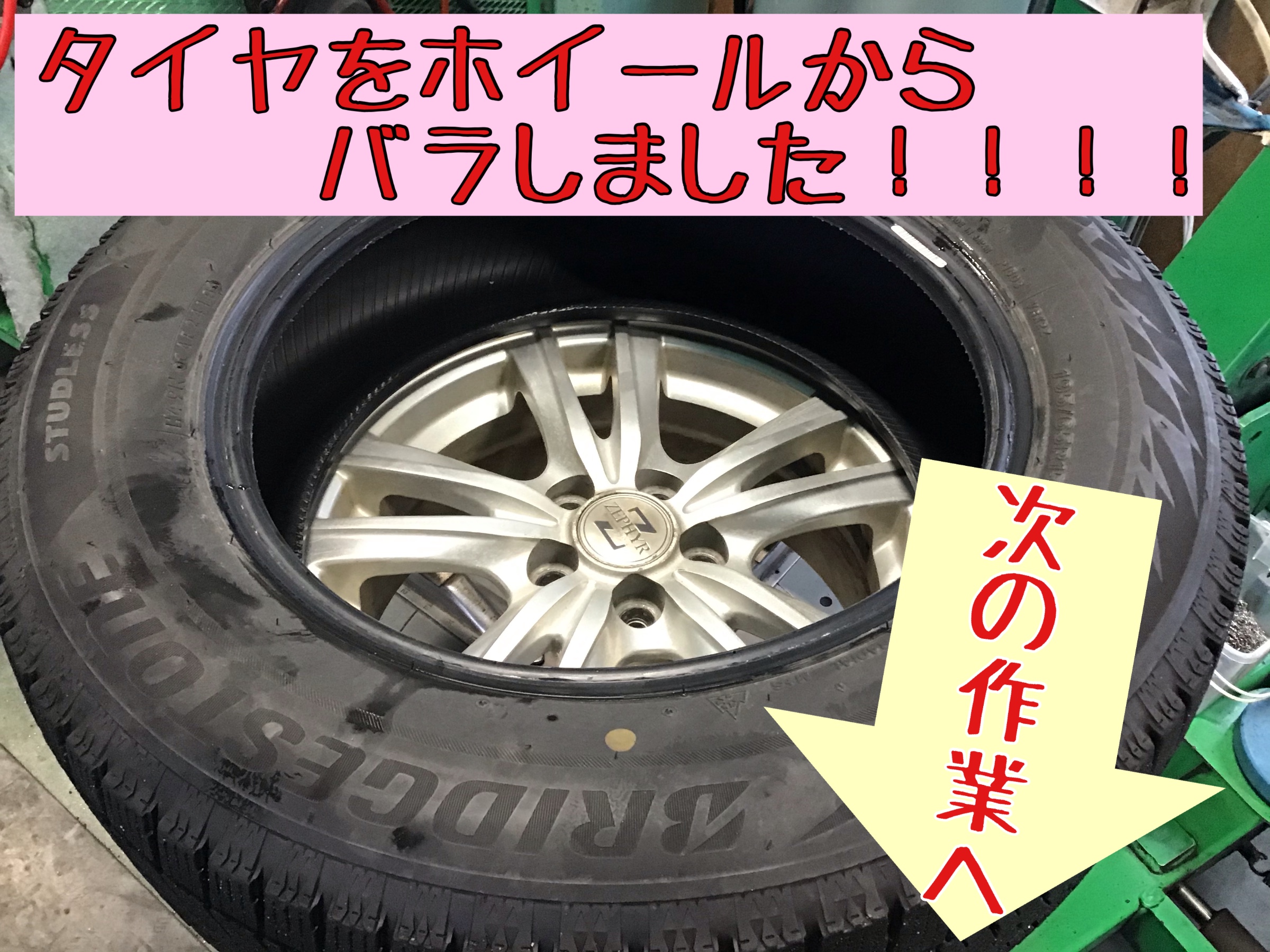 まずタイヤをホイールから