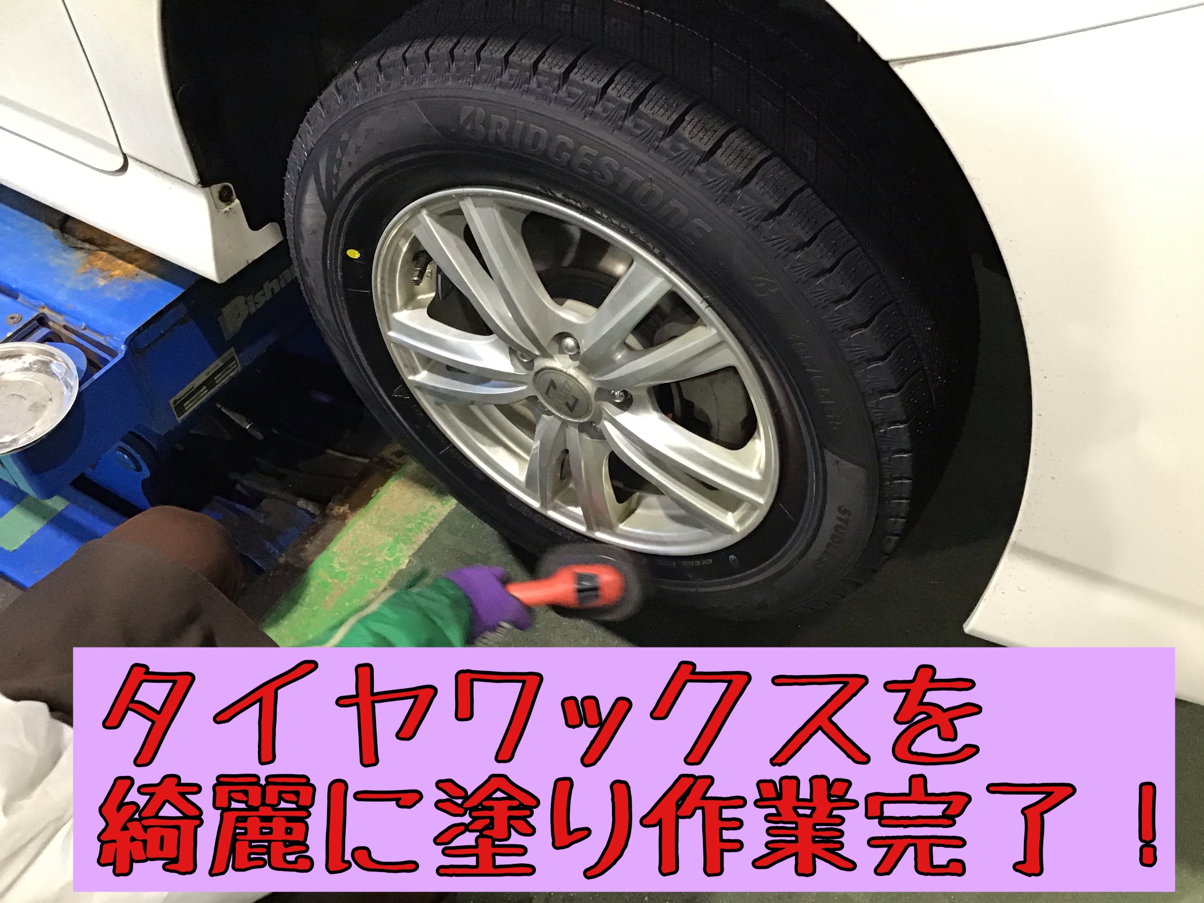 タイヤワックスを塗って