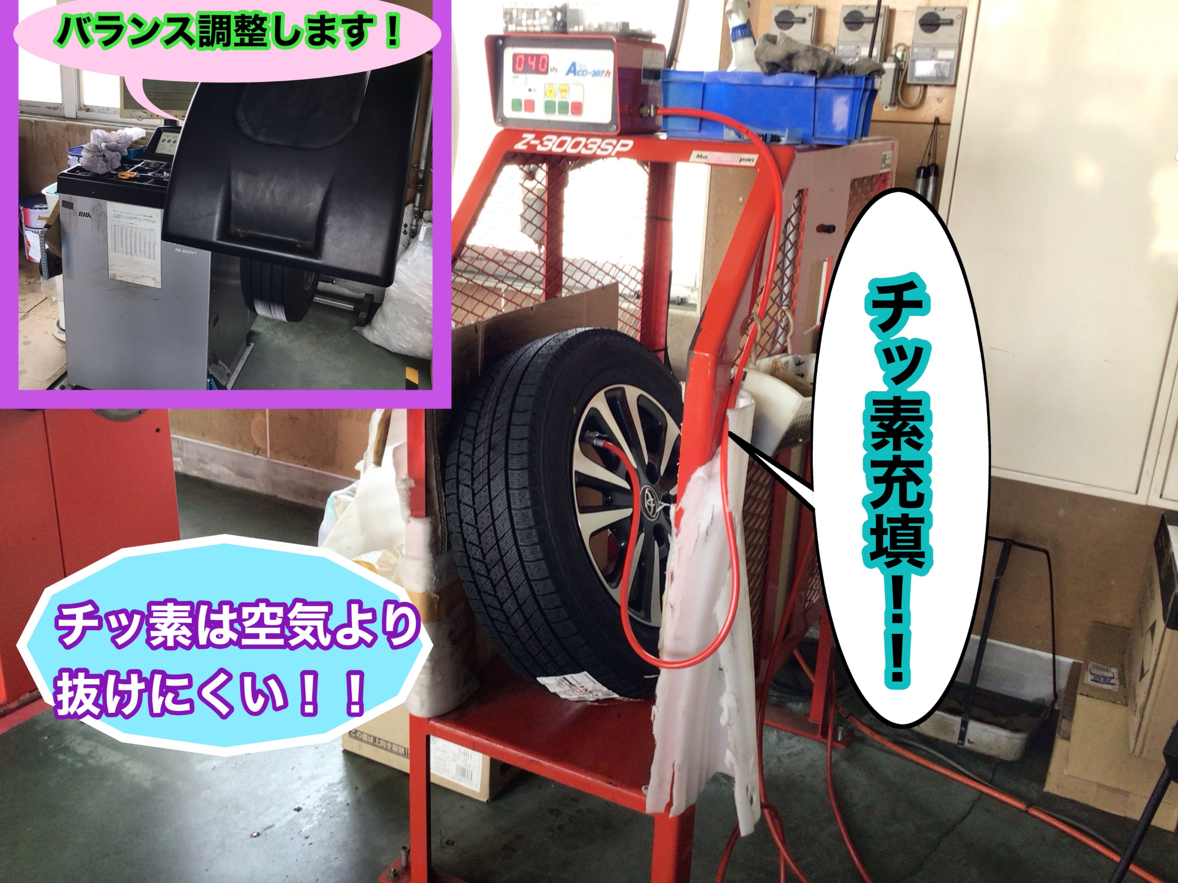 チッ素を充填したらタイヤのバランス調整します!