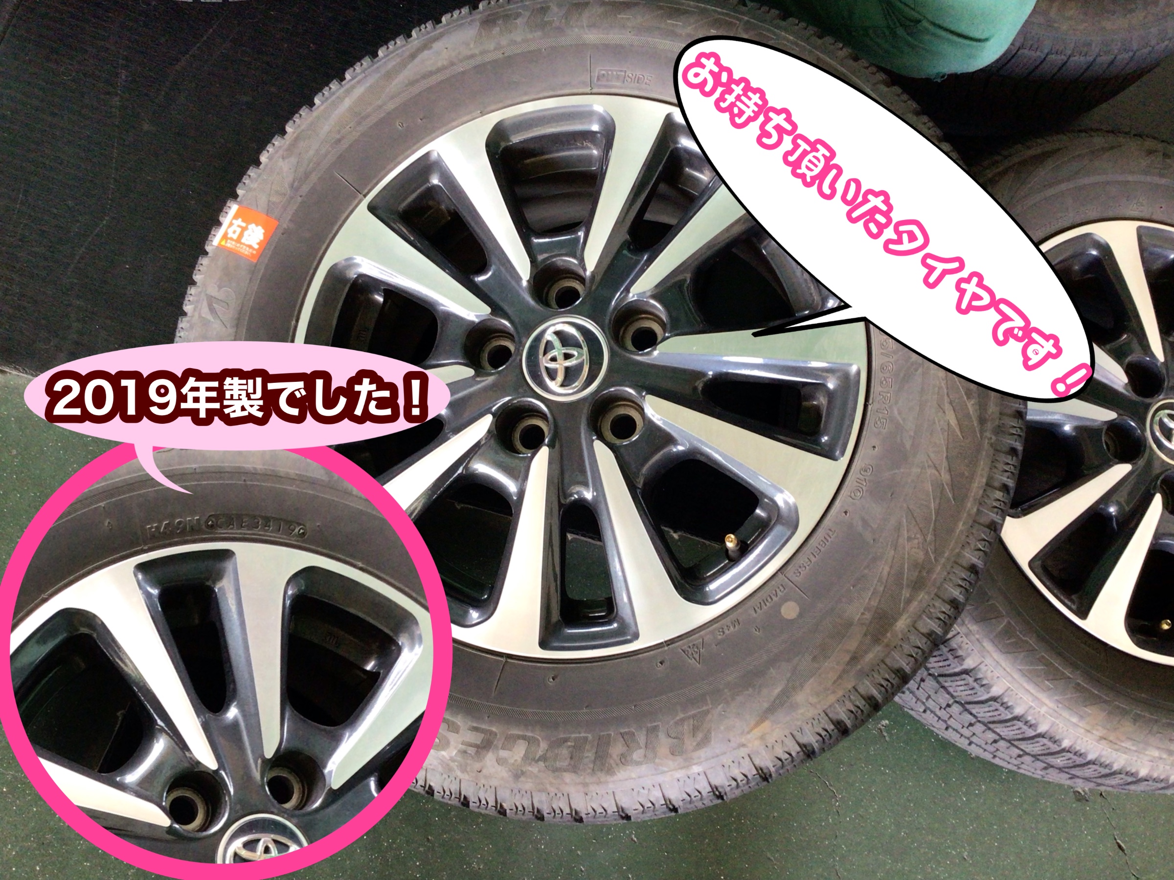 お持ち頂いたタイヤは2019年製でした!
