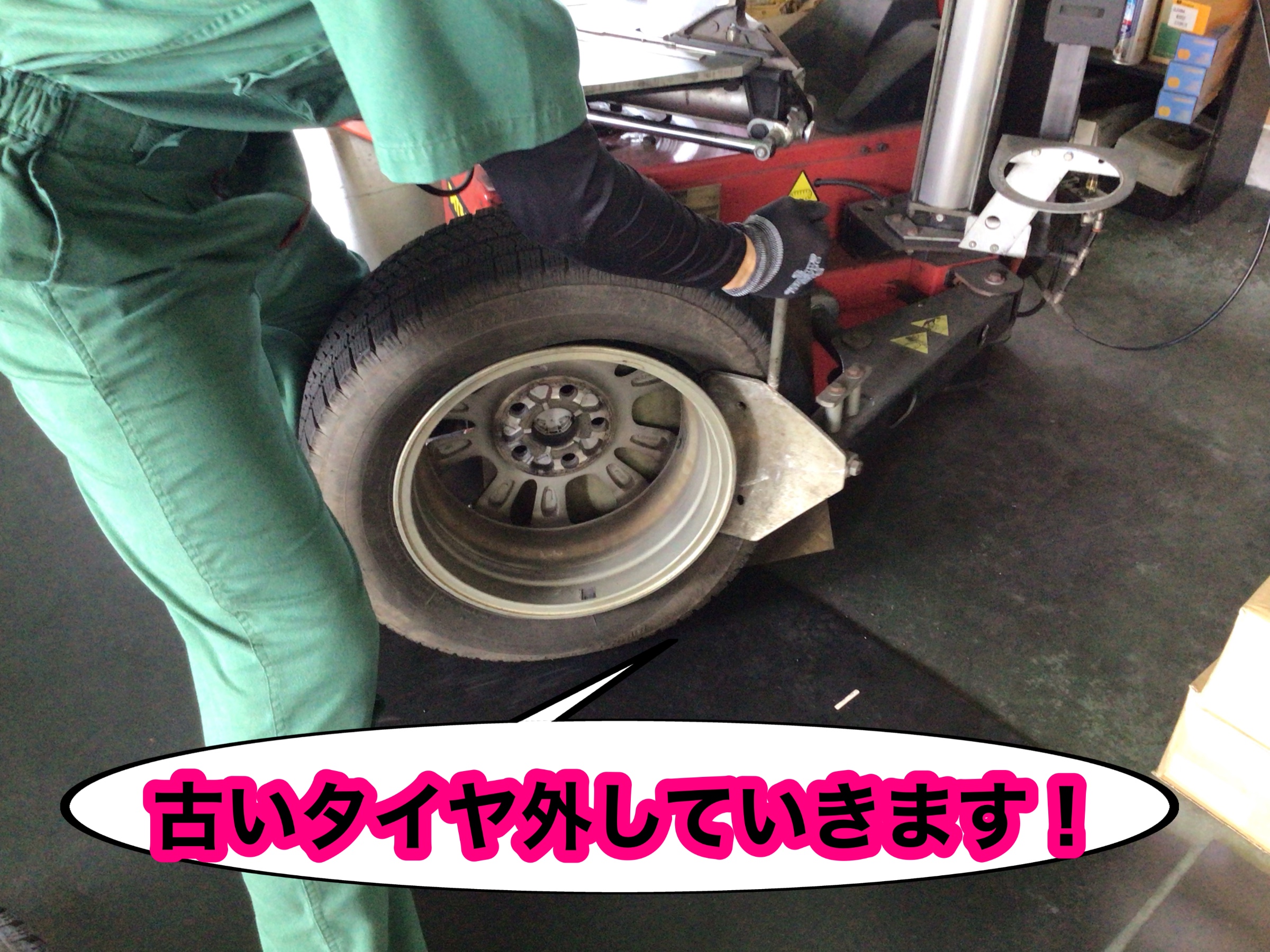 お持ち頂いたタイヤを下ろします!