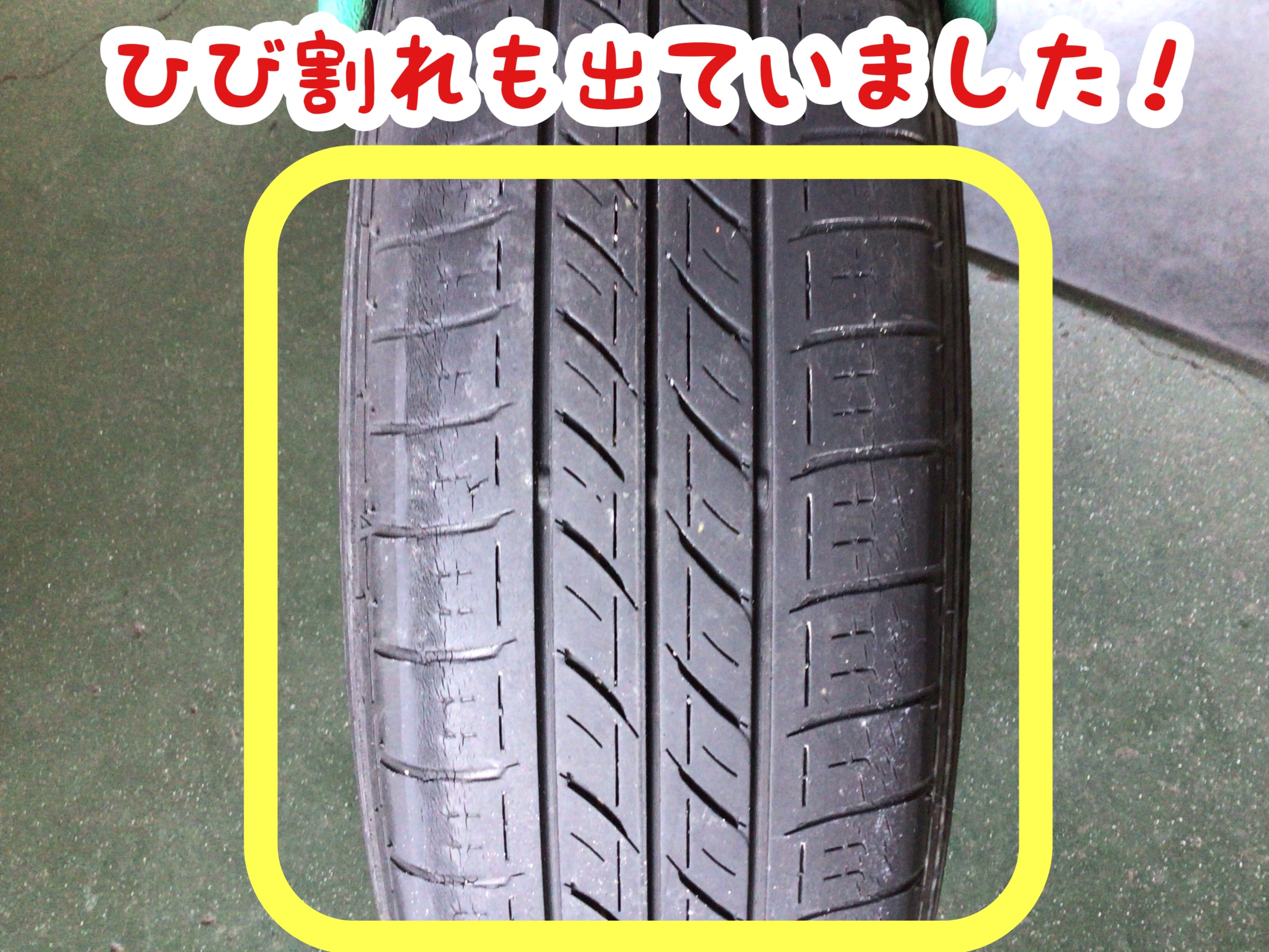 タイヤに擦り減りとヒビ割れが