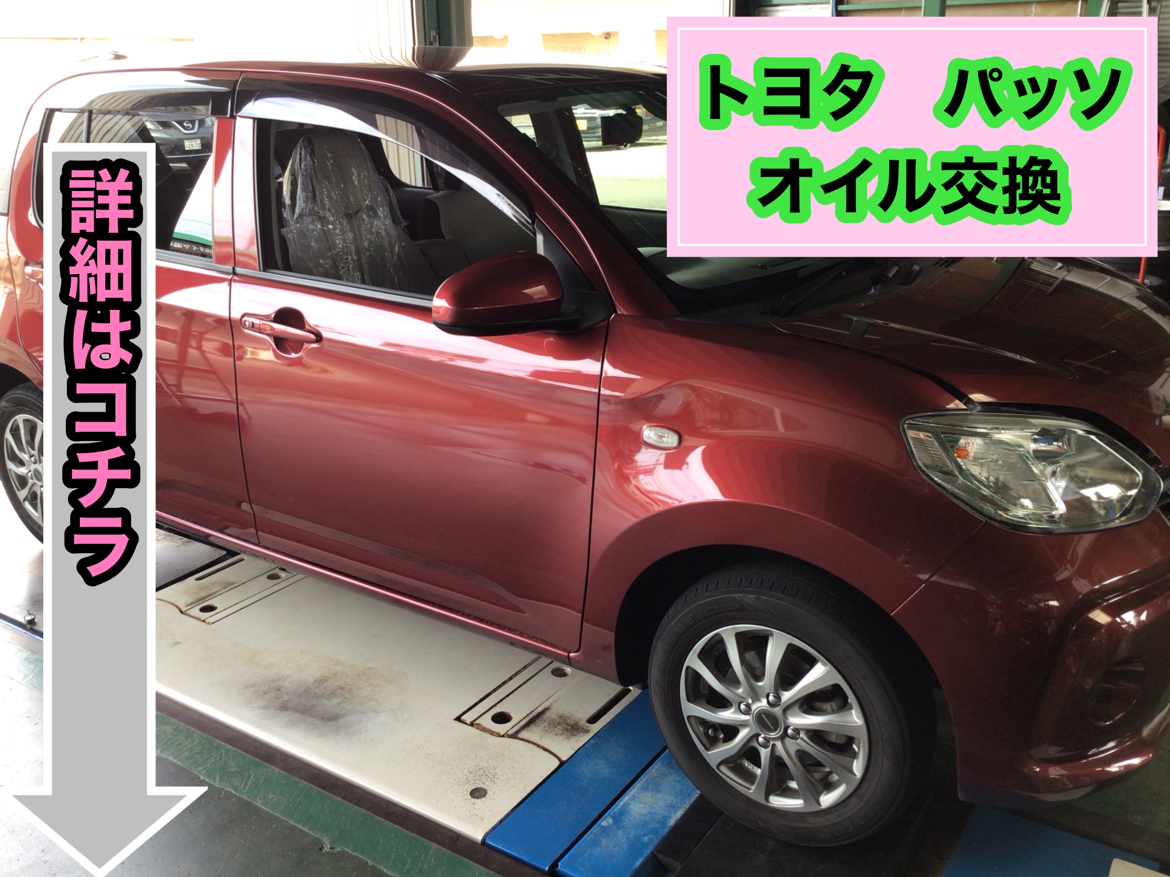 本日はトヨタ パッソのオイル交換作業