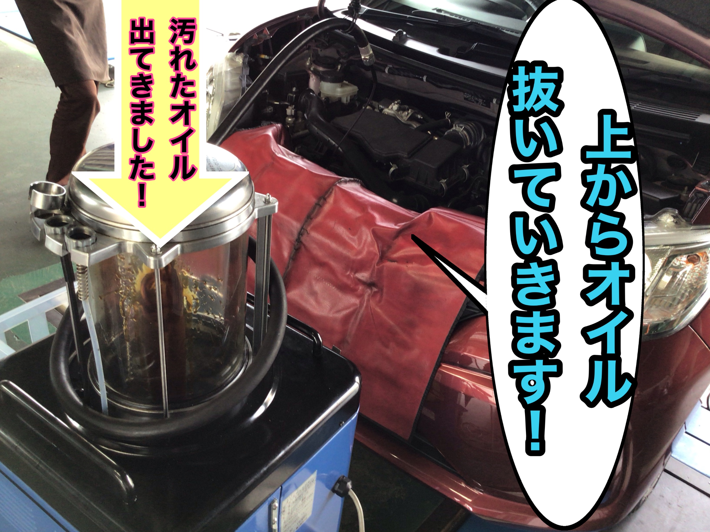 ボンネット開けて上から古いオイル