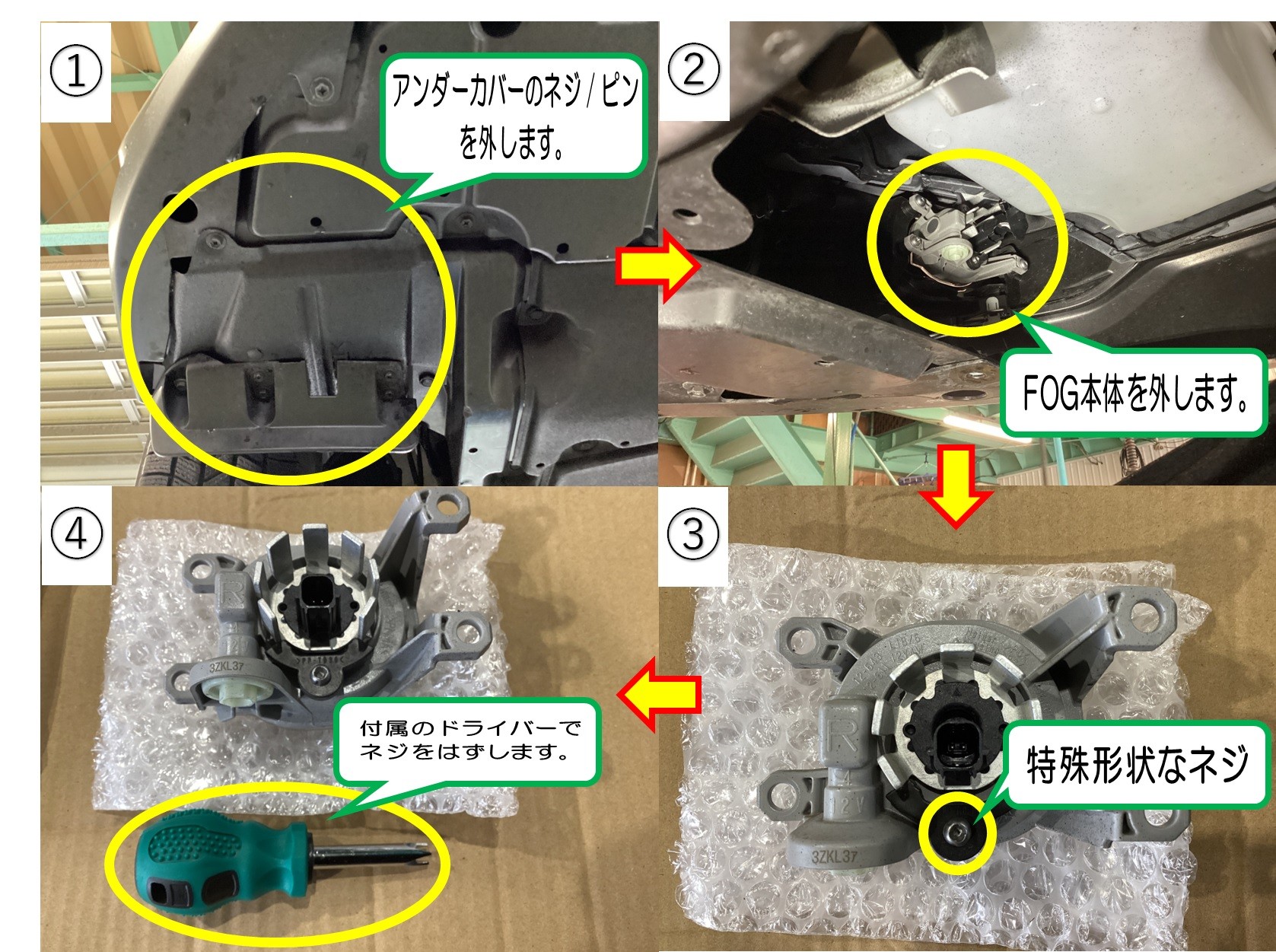 特にフォグランプ本体を外さなくても交換はできるのですが