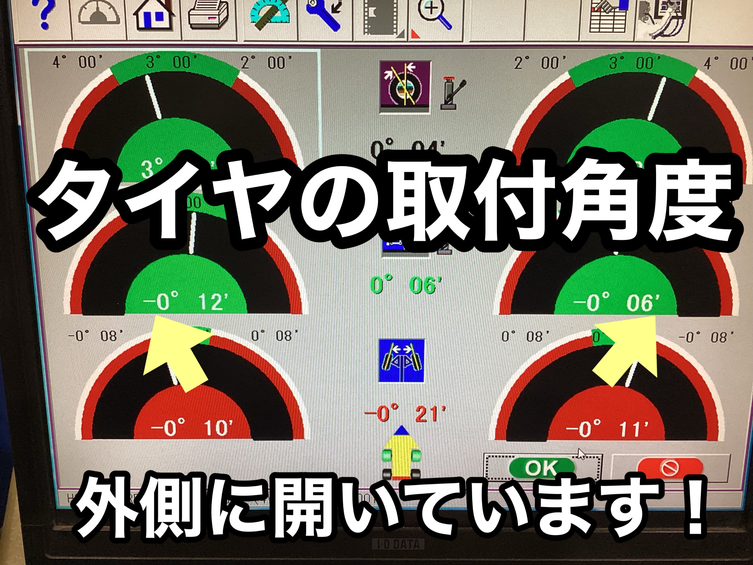 アライメントはタイヤの取付角度=車両側のデータとなり