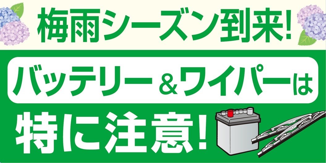 これから梅雨時期になりますのでバッテリー&ワイパーもチェック無料ですよ!お気軽にお申し付け下さい!