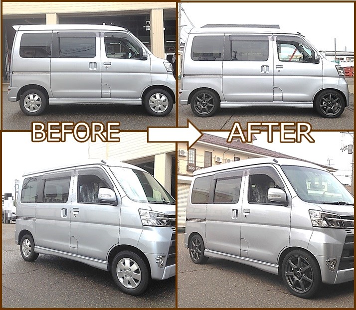 今日はタイヤホイールセットと車高調を取付させていただきました