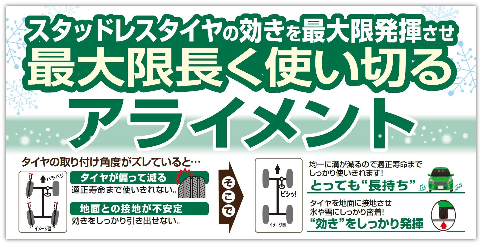 せっかく買ったスタッドレスタイヤの性能発揮や長持ちの為にも