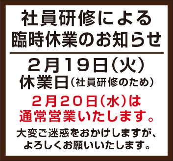 10:00 ~ 18:30 (作業受付 18:00迄)※季節等により変動がある場合がございます。詳しくは『お知らせ』をご確認ください。