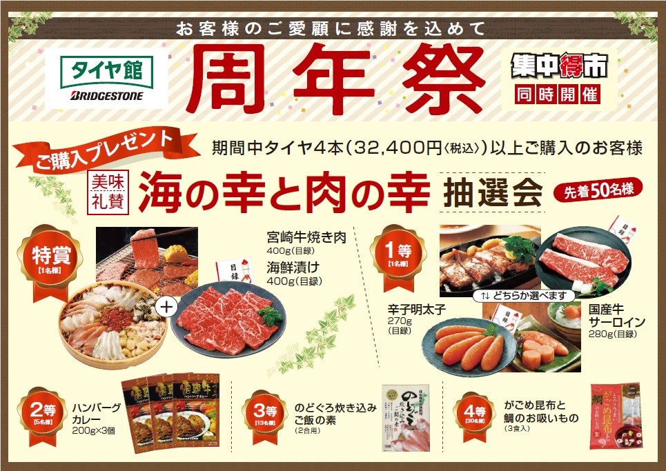 ※タイヤ4本(32,400円(税込み))以上ご購入のお客様