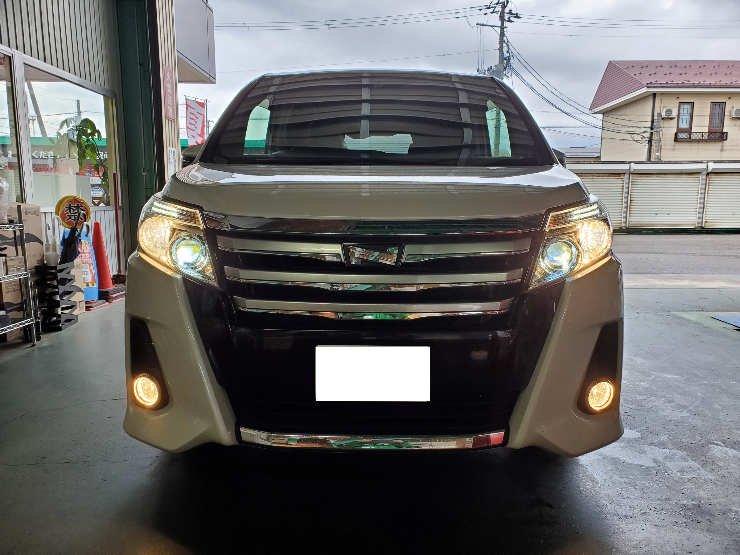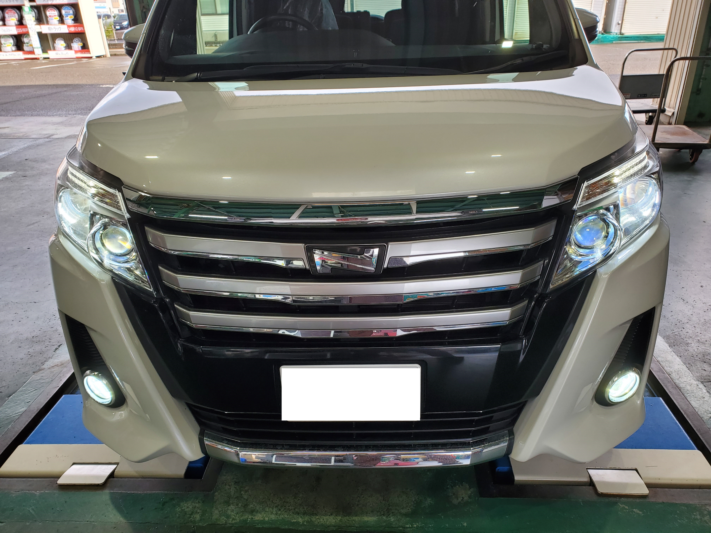 本日はトヨタ ノア(型式:DBA-ZRR85W)に純正ハロゲン球からLEDバルブへの交換を実施致しました。