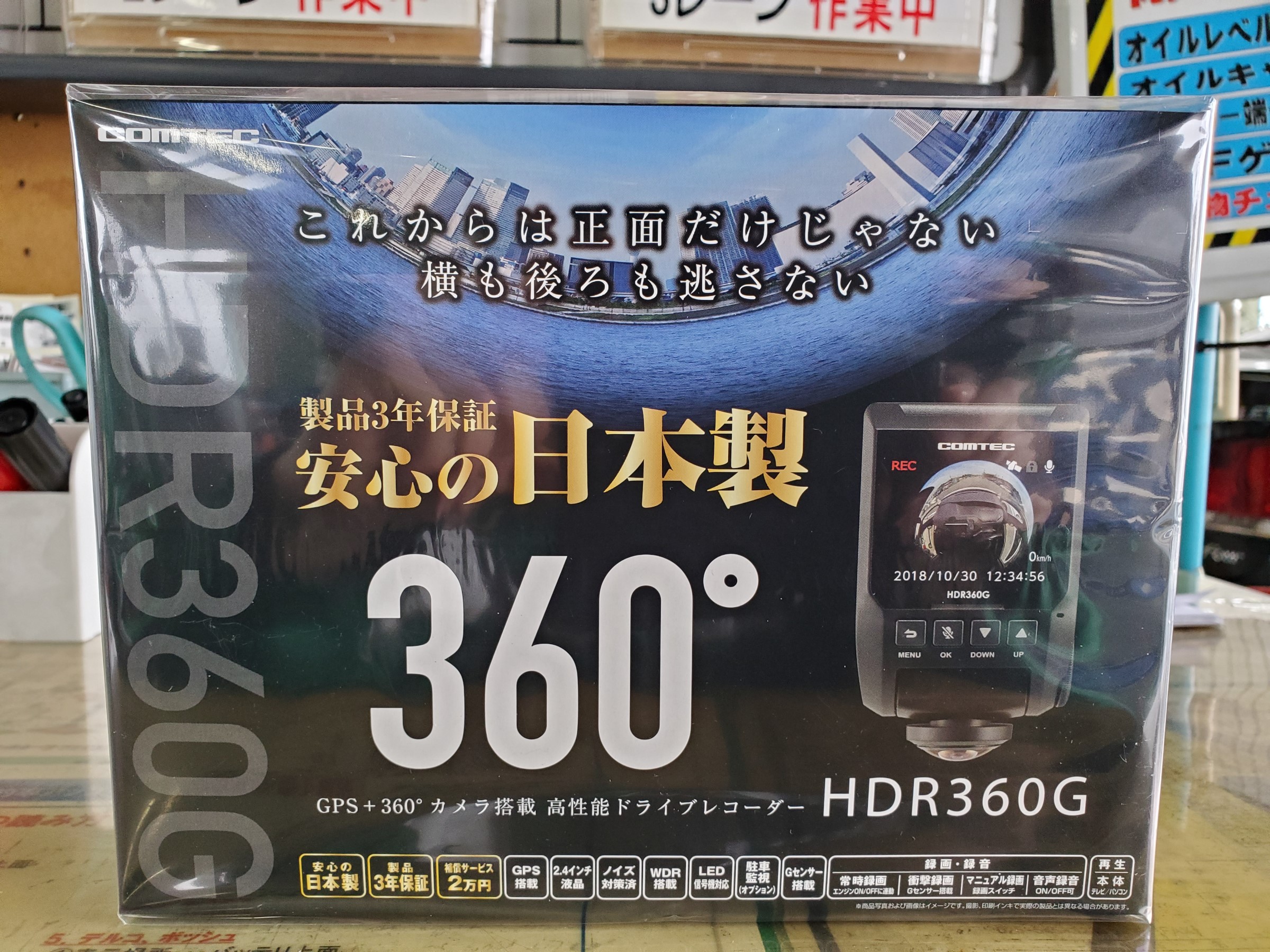 商品はコムテック HDR360G GPS+360°カメラタイプになります。