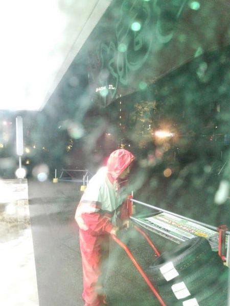 19時過ぎた頃、突然の大雨風が吹き荒れ雨具を着ての