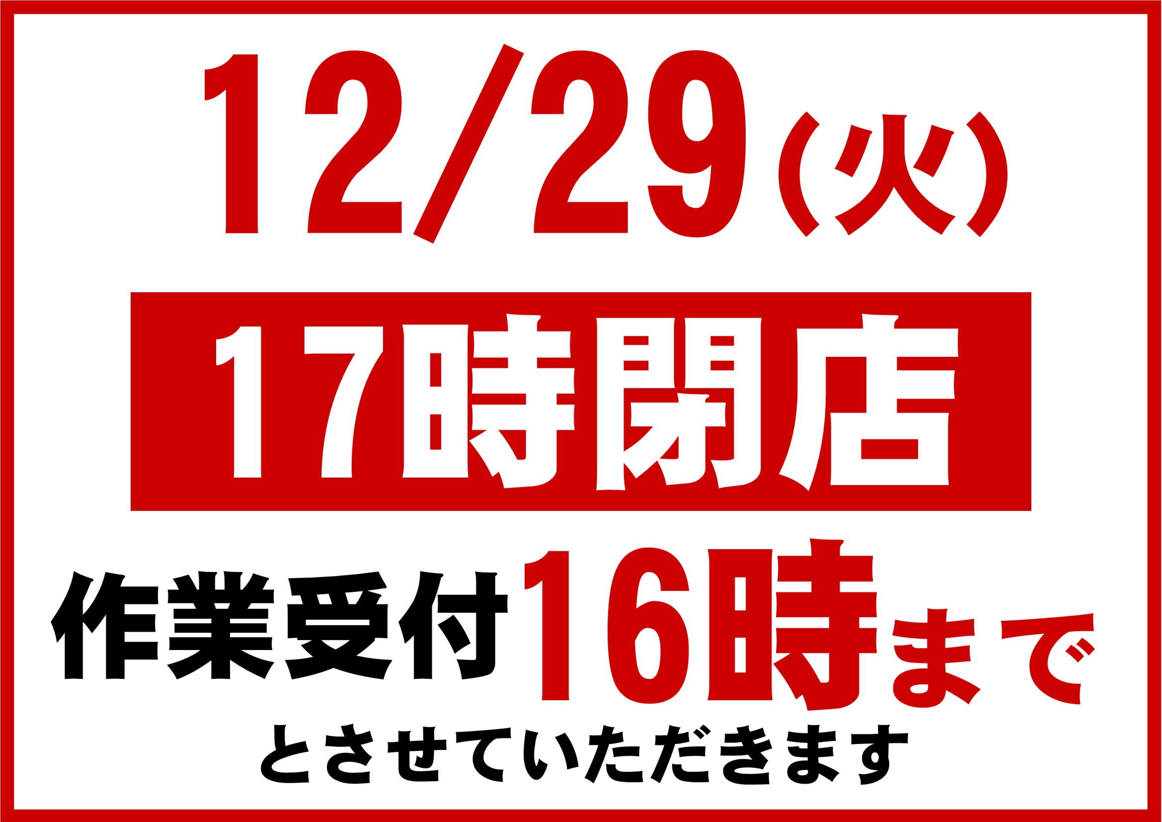 広島市安佐北区のタイヤ館可部店です。 本日、年内最終営業日です★ 営業時間 10:00~17:00 作業受付 10:00~16:00 に変更になりますのでご了承ください。 年末年始、帰省やお出かけ前の点検も 当店にお任せください♪