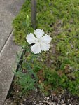 4月に更新した日記で、 ナデシコの種を貰ったのでタイヤ館の花壇に植えると紹介していたのですが、 今朝見たら咲いていました♪♪ 可愛い白い花でした* 勝手にピンクの花が咲くかと思っていましたが・・・・・・ 綺麗に咲いてくれてよかったです! 次は何を植えようかな~!