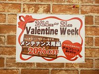 バレンタインのイベント終了いたしました♪ ご来店いただいた皆様、ありがとうございました! 次のイベントは~~~~ 女性の方必見! 毎日がレディースデー! 3月1日~7日まで、 レディースウィークを開催します* 女性と一緒にご来店の男性のお客様も オイル交換やバッテリー、エアコンフィルター...