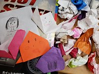 とっても明るく元気な2人のお客様に かわいいプレゼントを貰いました♪ たくさんの折り紙と、 折り紙で作ったペンギン・おむすびと似顔絵です*。 ”目の前にあるものすべてがおもちゃになる” というお母さんの名言が飛び出ました。 帰り際も見えなくなるまで手を振ってくれて とても可愛かったです♪