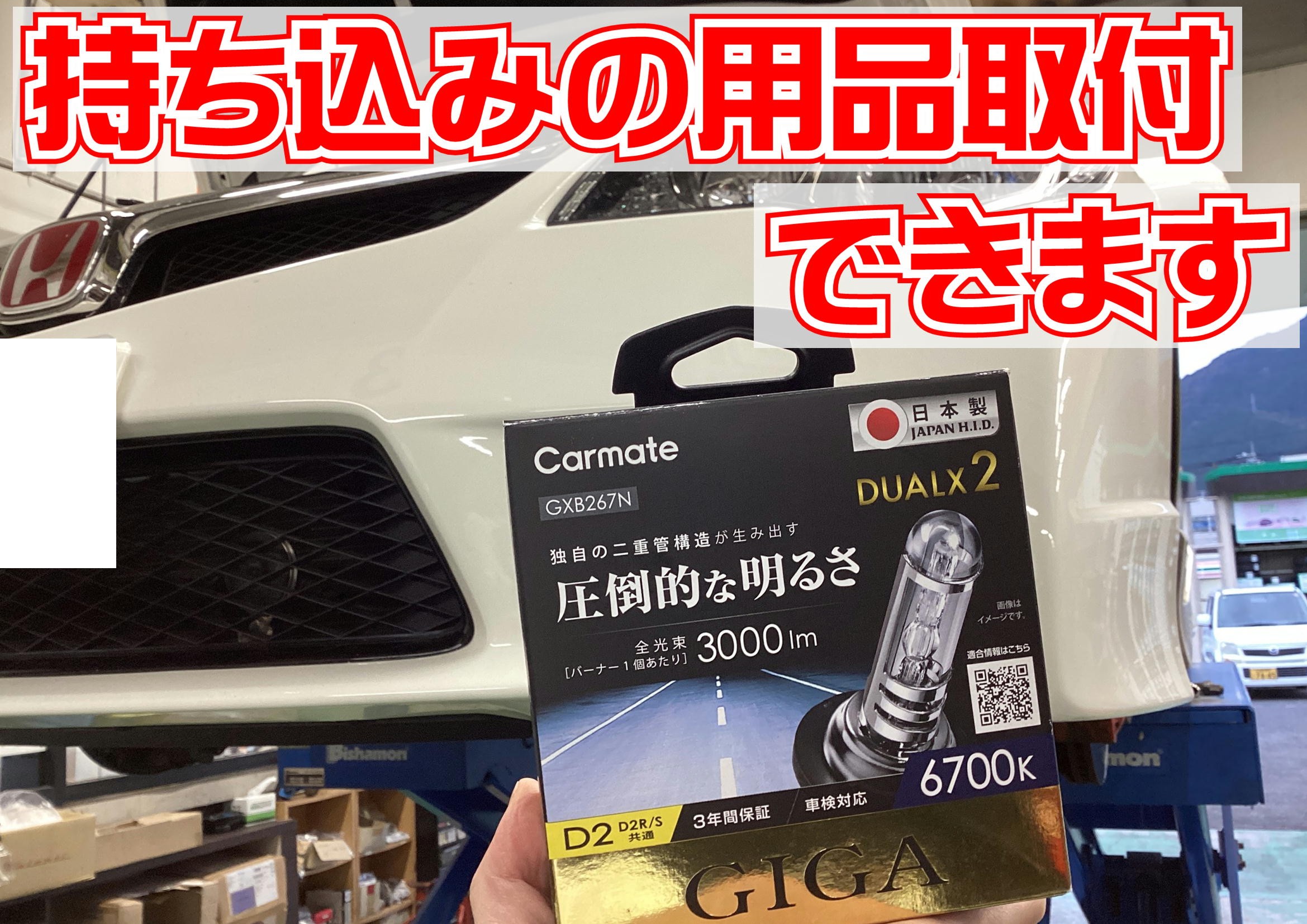 広島市安佐北区のタイヤ館可部店です。 本日ご紹介するのは、 車種 WRX STI 作業 持ち込みヘッドライトバルブ交換 です! タイヤを外してからの交換になります! ここにありました! 狭い… 手が入らん… と、苦戦しながらも無事交換終了です⭐︎ 青白くなりました♪ 持ち込みの用品取り付けも承り中です...
