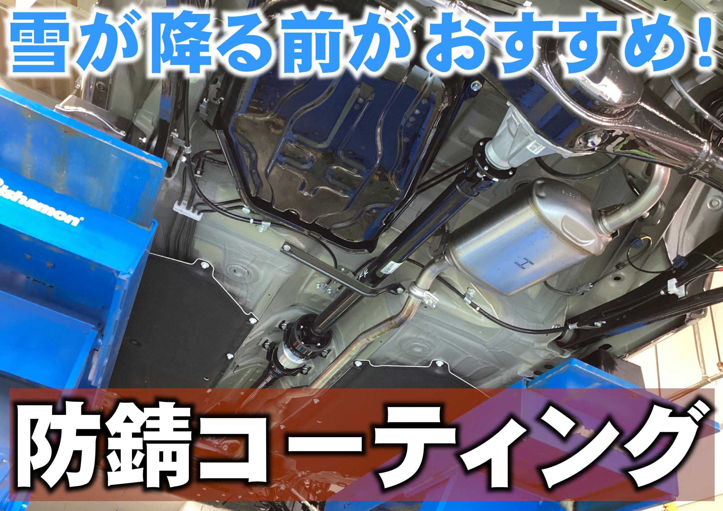 広島市安佐北区のタイヤ館可部店です。 冬タイヤへの交換で、混雑しておりご迷惑をおかけいたしますが 待ち時間のご協力よろしくお願いいたします。 本日ご紹介するのは、 塩カル対策の防錆コーティングです。 車体下回り等に専用溶液を塗布することで錆の進行を抑制します。 下回り全般の金属部分...