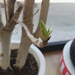 本日、女性のお客様にお得な レディースデーです♪ お店に置いてある木に 新しい芽?ができてました★ 忘れずに水やりしようと思います!