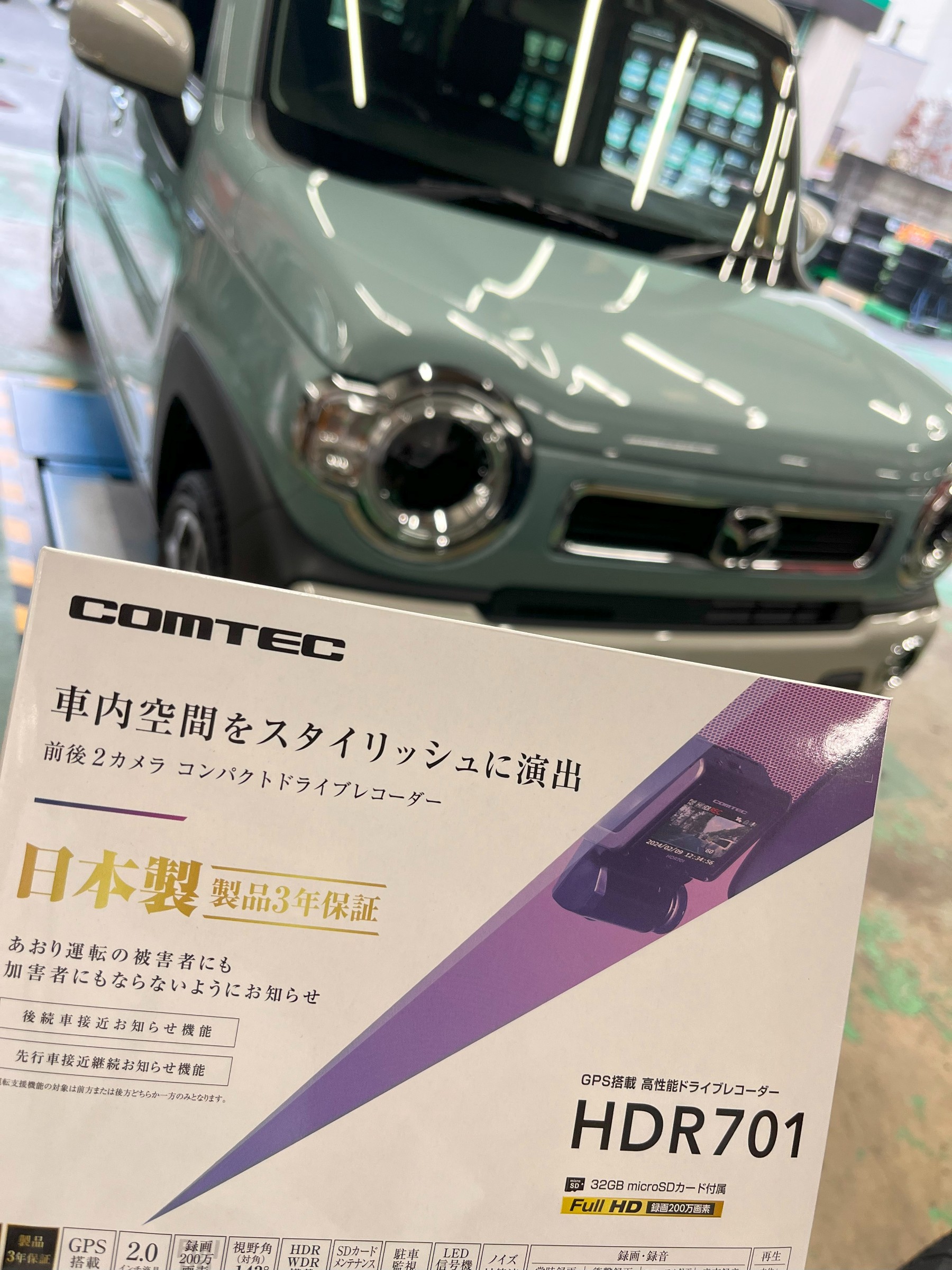 広島市安佐北区のタイヤ館可部店です。 本日ご紹介するのは マツダ フレアクロスオーバー ドライブレコーダー取り付け です。 取り付けたのはこちら! COMTEC コムテック HDR701 前後2カメラ 日本製 3年保証 フロントガラス上部への取付けが可能なため、吊り下げタイプに比べて よりスッキリした視...