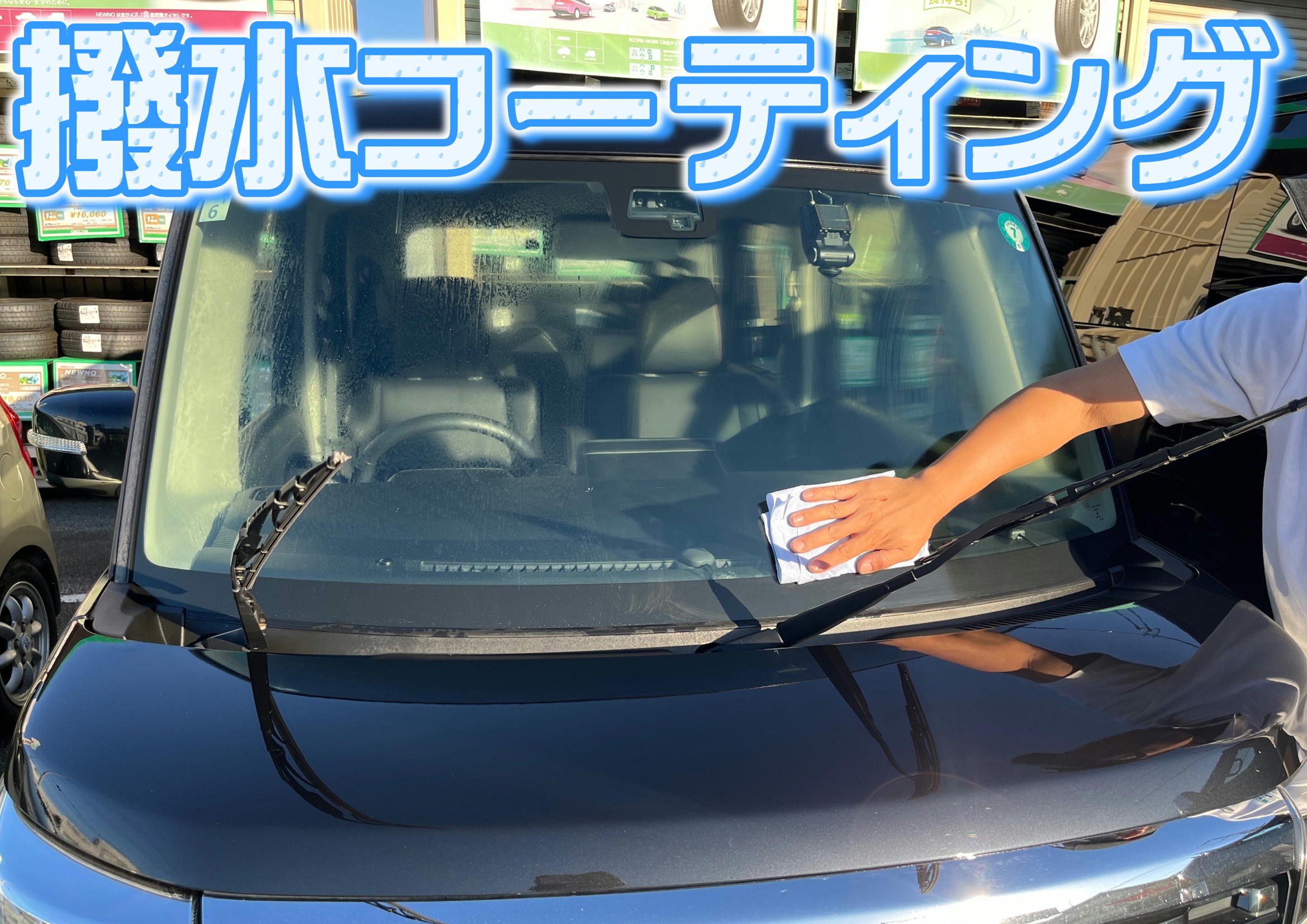 広島市安佐北区のタイヤ館可部店です。 WURTH(ウルト)アクティブガラスクリーナー を使ってきれいになったフロントガラスに 撥水コーティングをしていきます★ 今回はスプレータイプの撥水コート剤を シュッシュッとフロントガラスに吹き付けます。 拭き取ったら完成です★ あっという間に終わった...