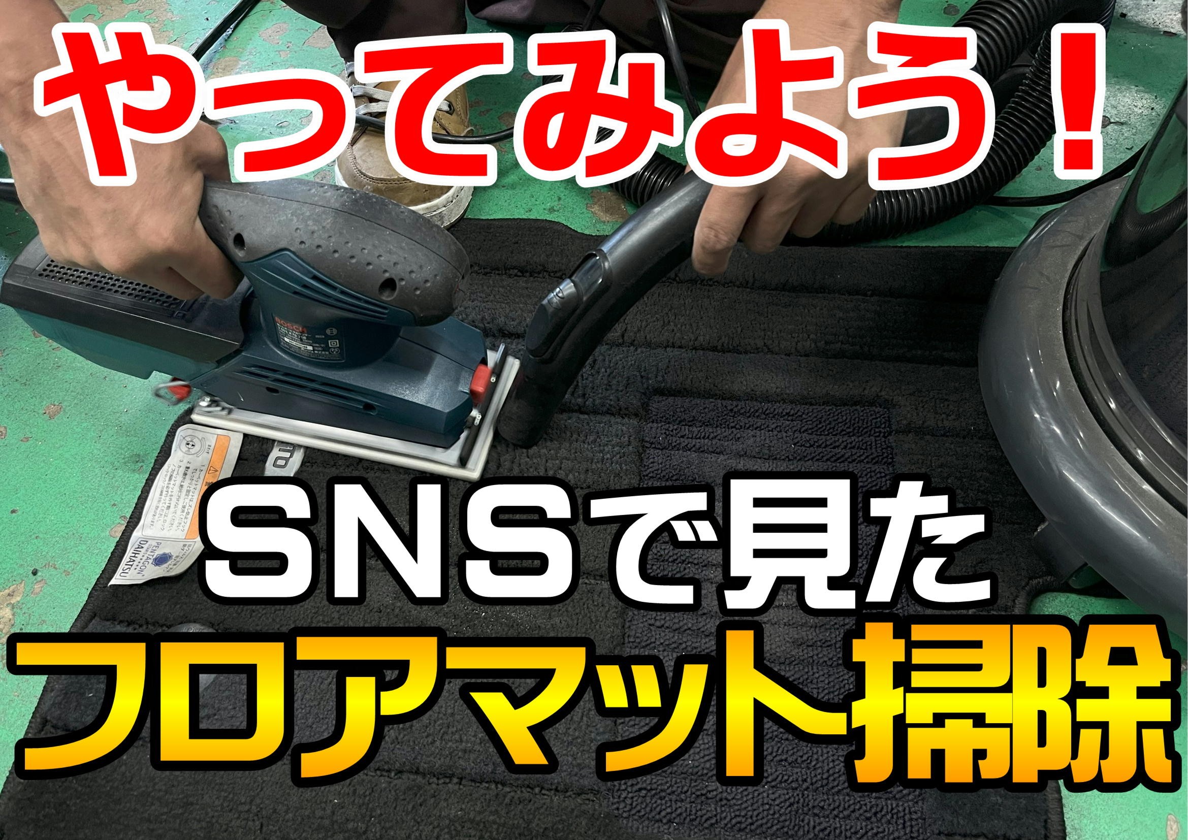 タイヤ館可部店です! 松尾さんがSNSで ポリッシャー/サンダーを使ってフロアマットの掃除をする という動画を見かけたらしく・・・ やってみよう!ということでやってみました★ 動画では、砂が永遠に出てきたらしいのですが 砂はたくさんでてくるのでしょうか・・・ ぜひ動画でお確かめください♪