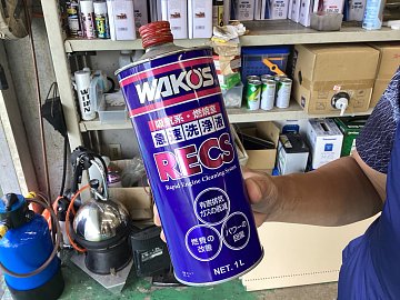 吸気系・燃焼室急速洗浄 Rapid Engine Cleaning System 通称【RECS】レックス 新車当時に近いパワーに回復 燃費の改善 有害排気ガスの低減 負圧ホースに繋ぎます。 排気量にあった量を 点滴のように入れていきます。 作業時間は約1時間 (排気量によって異なります) 終わったら、エンジン内部に残...