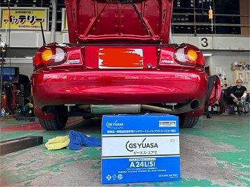 広島市安佐北区のタイヤ館可部店です。 本日ご紹介する作業はこちら! 車種:ロードスター 作業:バッテリー交換 こちらの車には、 GSユアサ A24L(S) ユーノス/ロードスター専用バッテリー を取付けました。 車種専用バッテリーなので、お取り寄せしました! 店頭にない商品はお取り寄せできますの...
